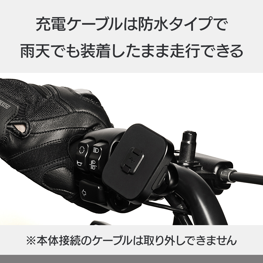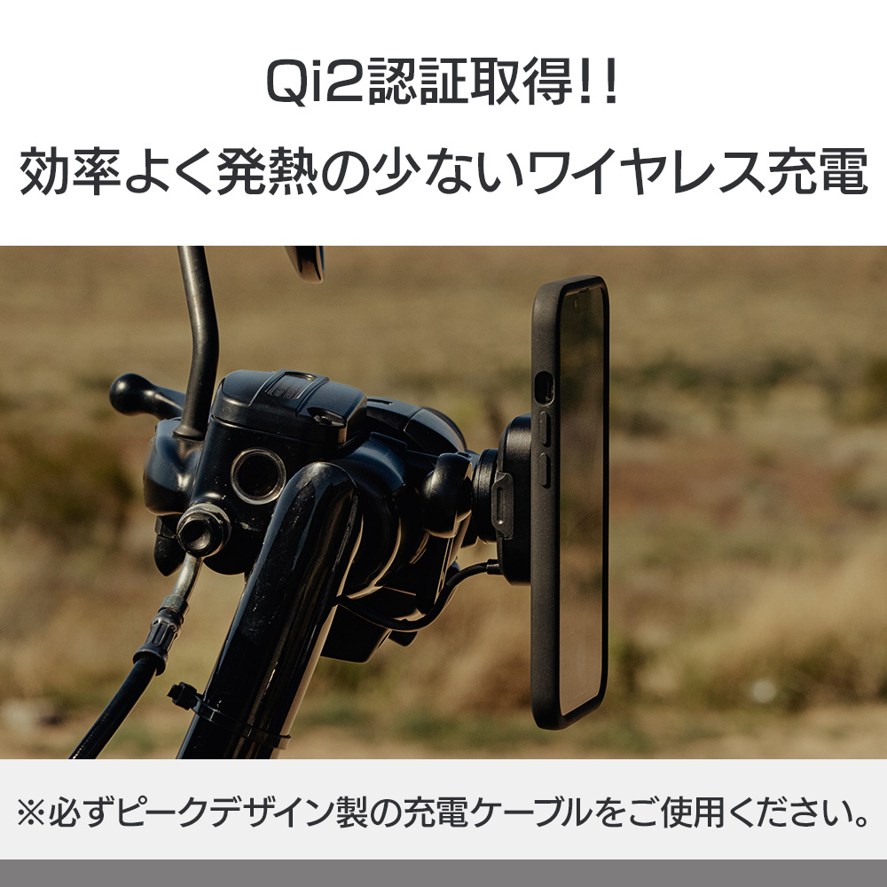 ※USB-A端子、またはバッテリーに直接繋げるSAE端子へ接続する場合は、別売りのピークデザイン製ケーブルキットをご使用ください。なお、Qi2充電規格の電力を得るためには、USB-CもしくはSAE端子のケーブルが必要です。