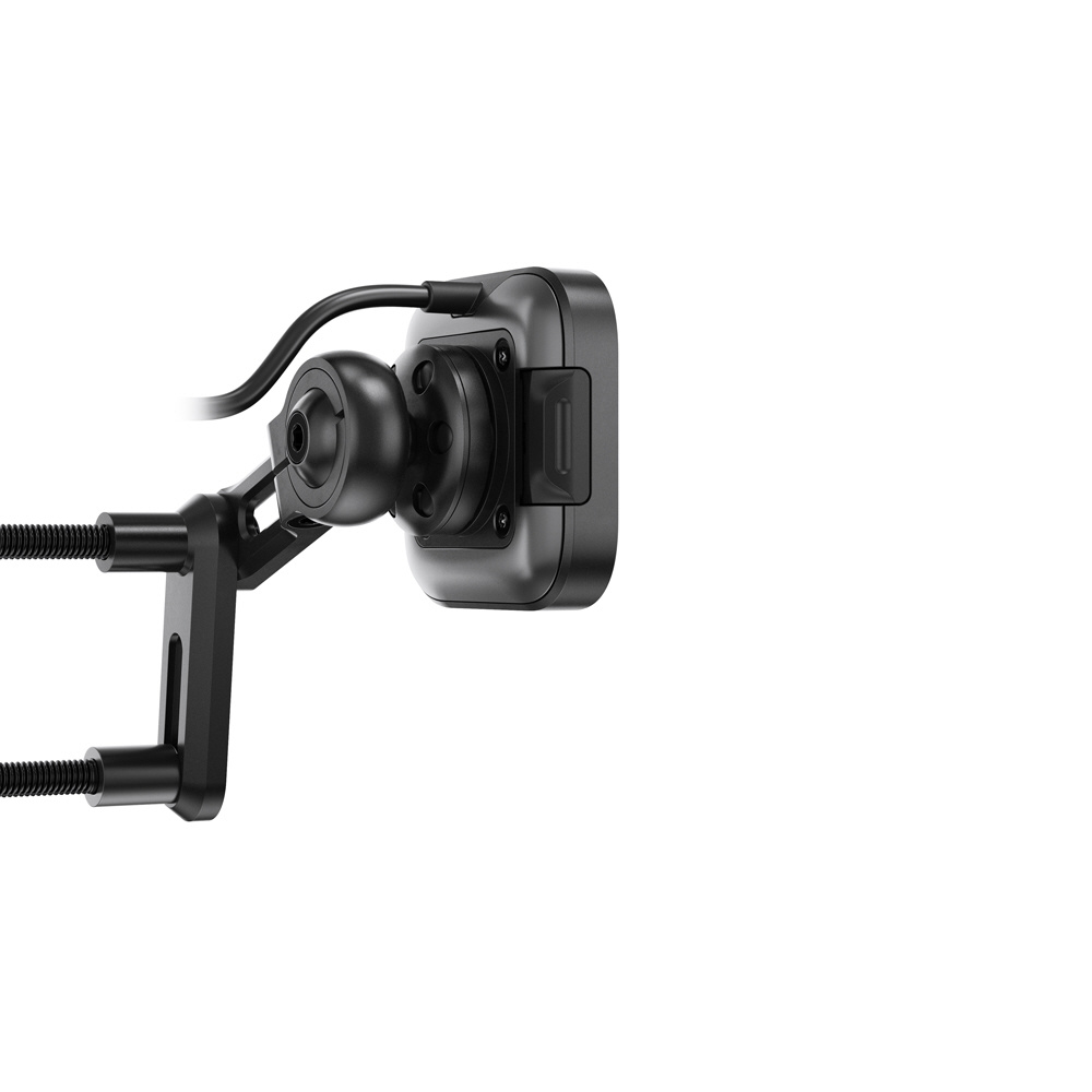 Qi2規格対応のワイヤレス充電機能を備えた、クランプホルダーに取り付けられるスマートフォンマウント。