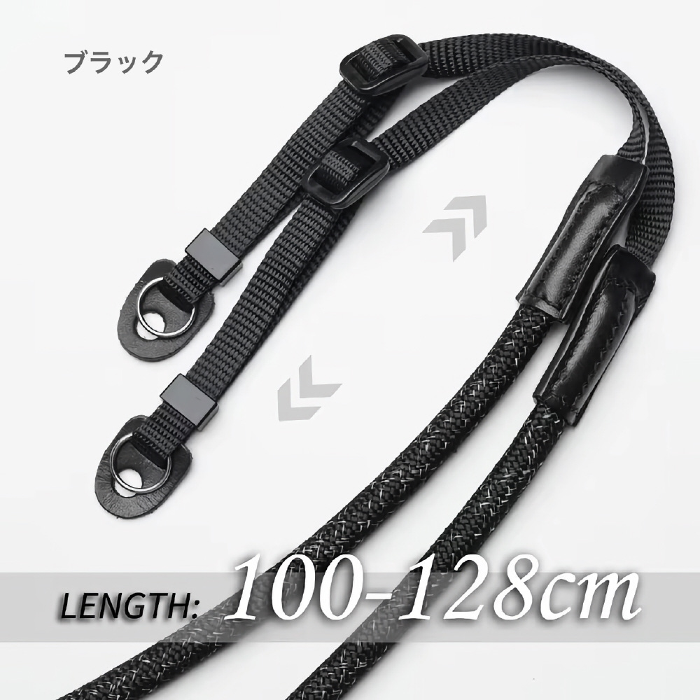 カメラ用ストラップです。100cmから128cmまで長さの調節ができます