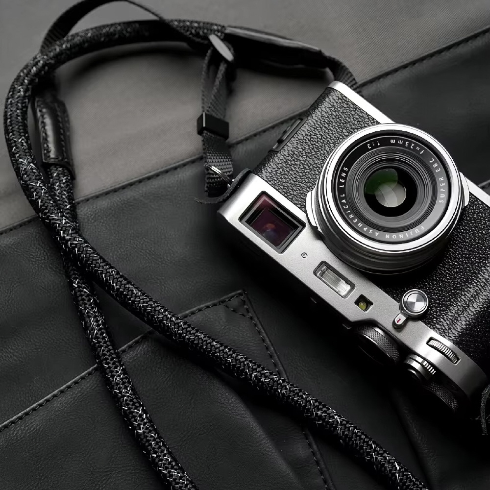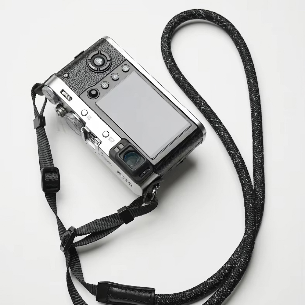 丈夫なナイロン製のクライミングロープを使用したカメラ用丸紐ストラップです。