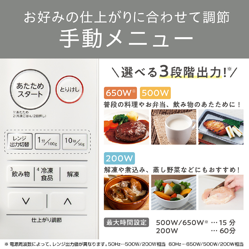 ・高周波出力:500W 200W相当(50Hz)/650W 500W 200W相当(60Hz)