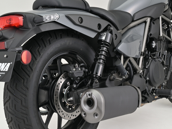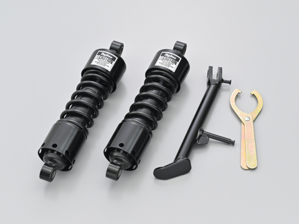 ローダウンながらすぐれた乗り心地、コーナリング性能、ギャップ走破性を実現したローダウンリアショックとショートサイドスタンドのセット。