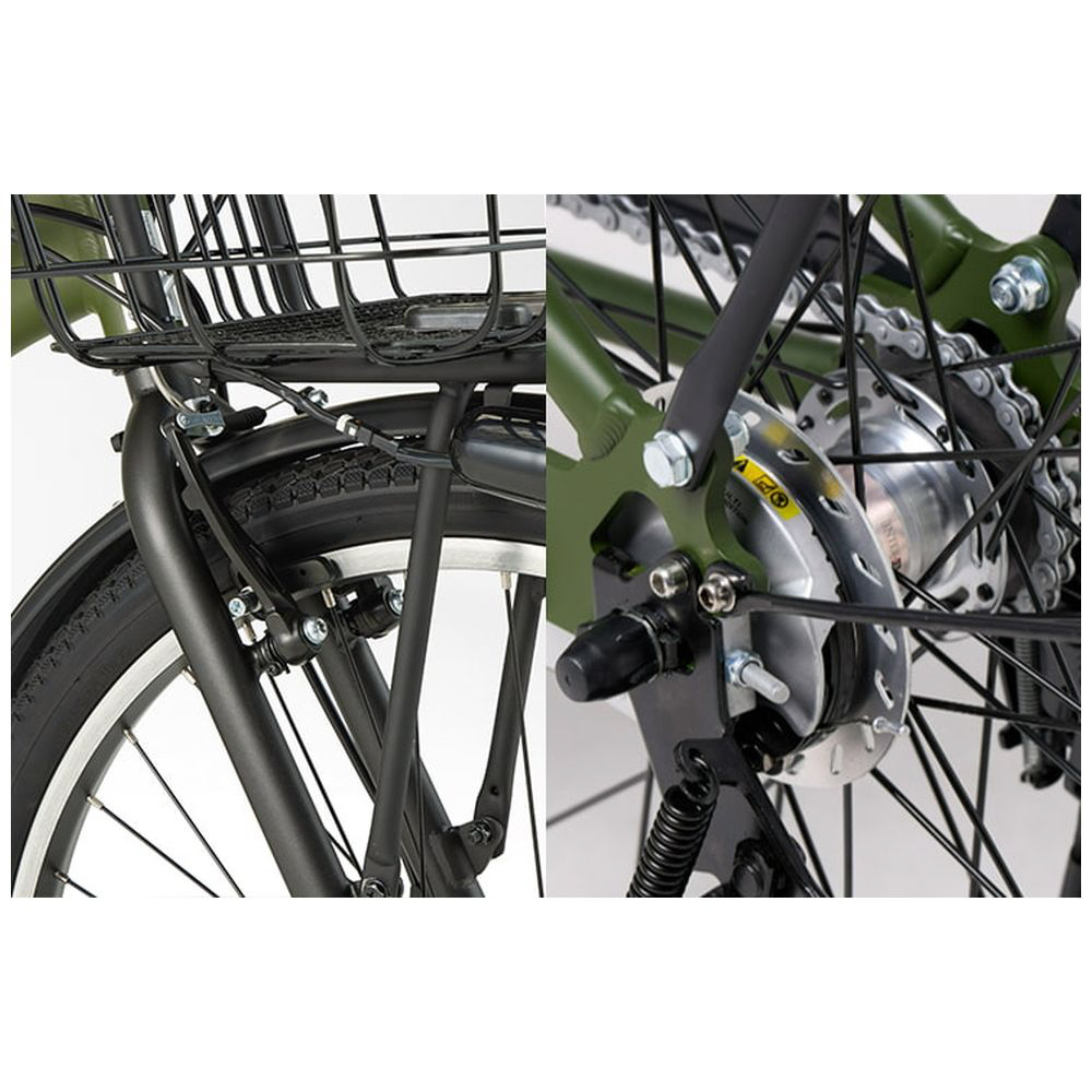 フロントにはスポーツ自転車で多く使用されるVブレーキ、リヤは大型のフィン付ローラーブレーキを採用。