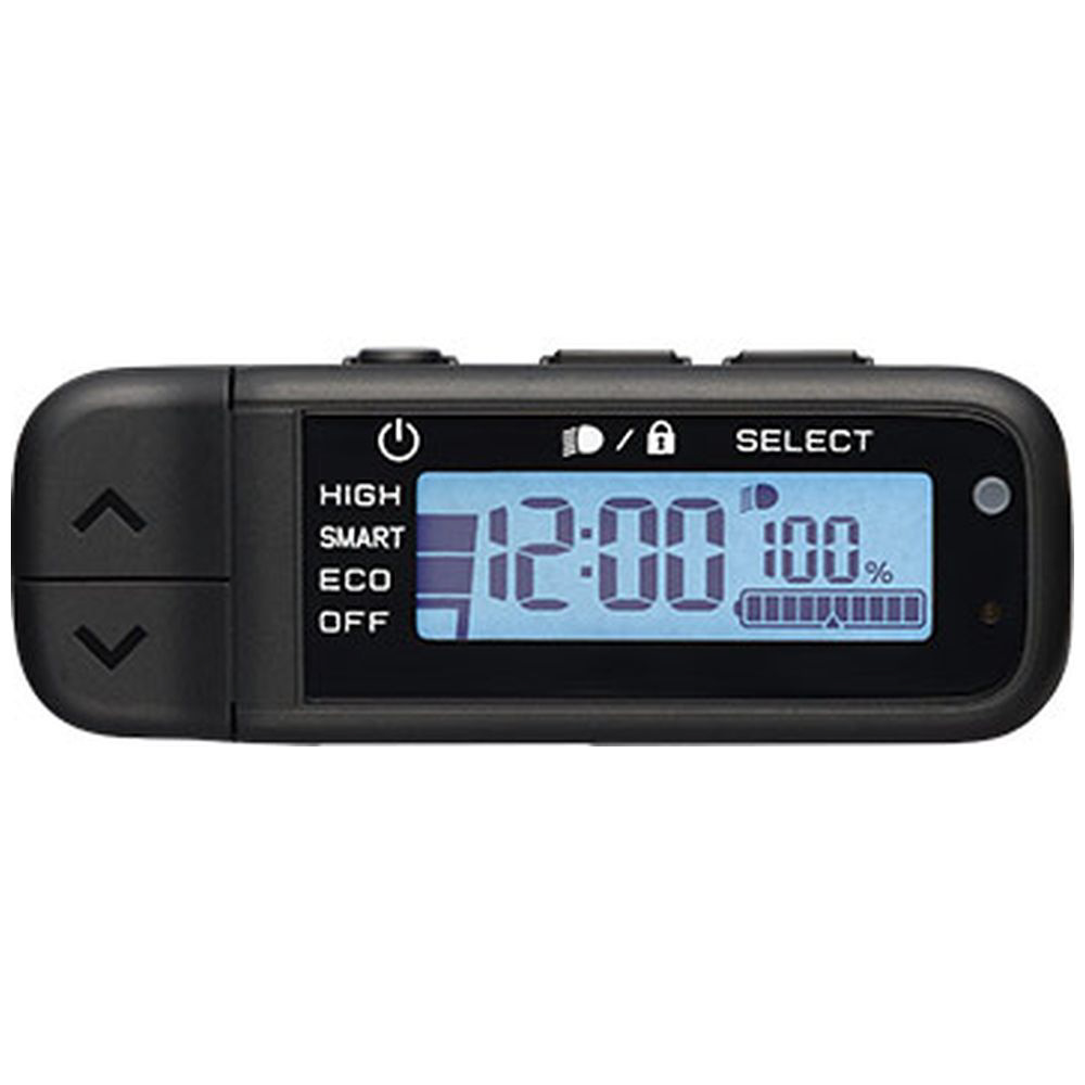時計表示、消費カロリー、バッテリー残量を確認でき、バッテリー残量低下お知らせランプ&ブザー付き。