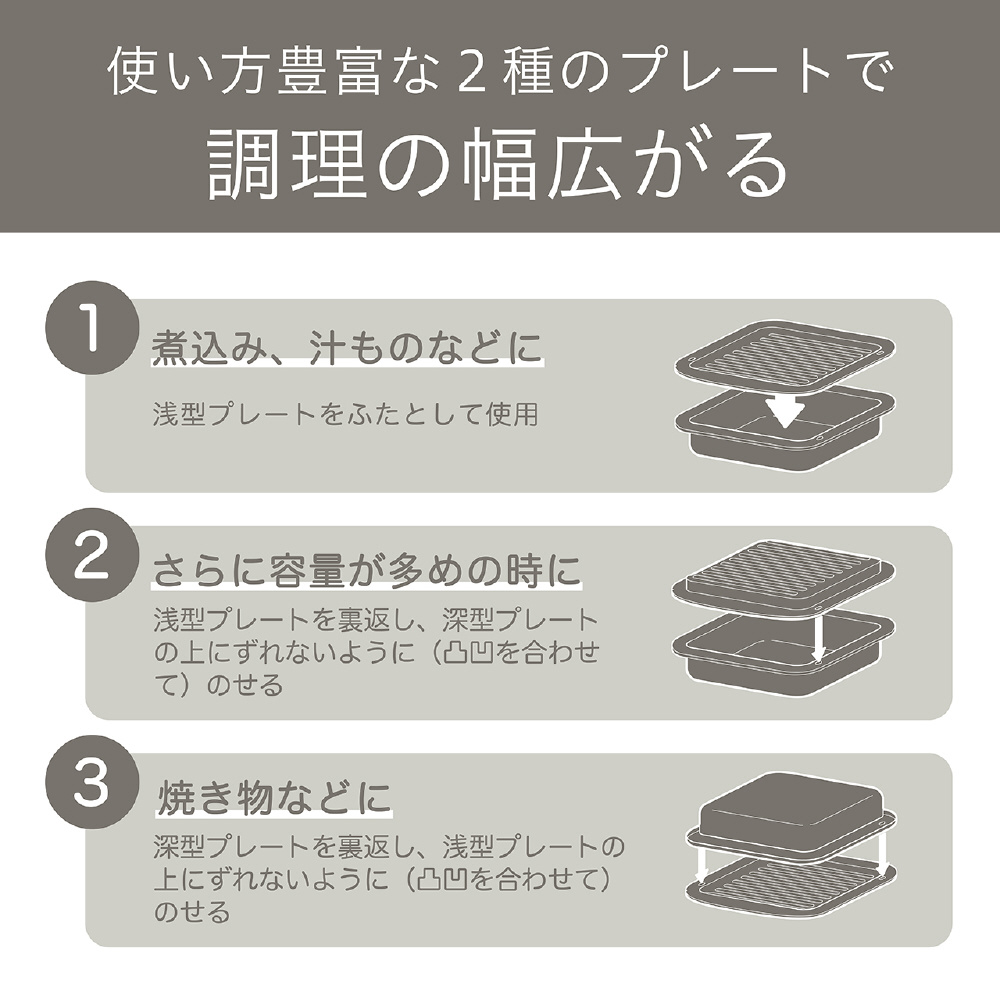 お手入れが簡単な焼き網着脱式、浅型・深型トレー付属で煮込み料理などトースト以外の調理にも便利