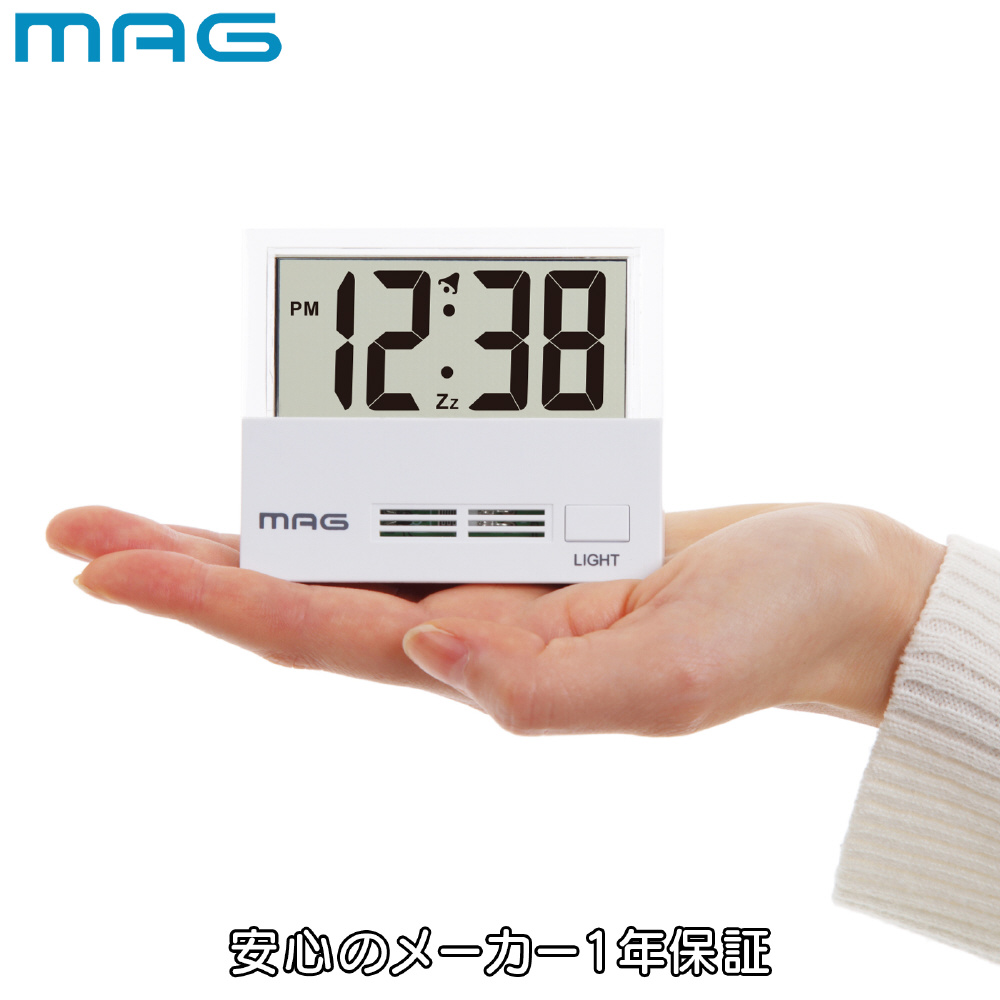 手のひらサイズのシンプルな目覚まし時計はわずかなスペースでも圧迫感なくご使用いただけます。