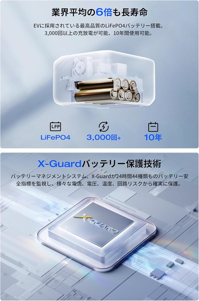 X-GaNPowerにより停電時にはスマホなどの通信機器の使用時間を最大2倍に延長し、アウトドアでは家族との幸せな時間をさらに長く楽しめます。