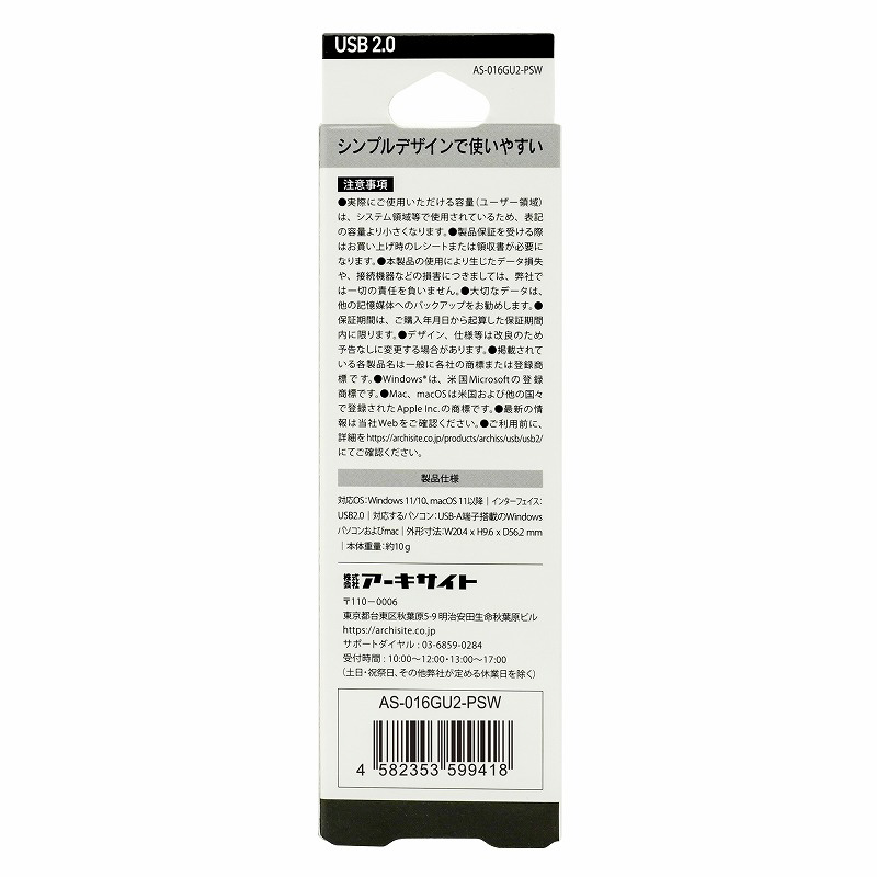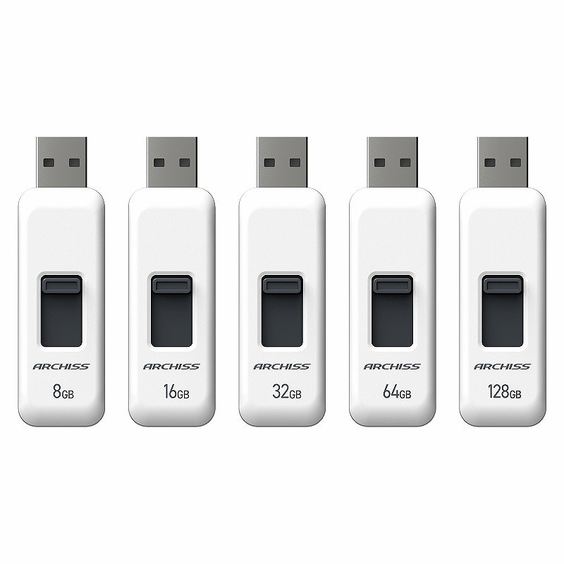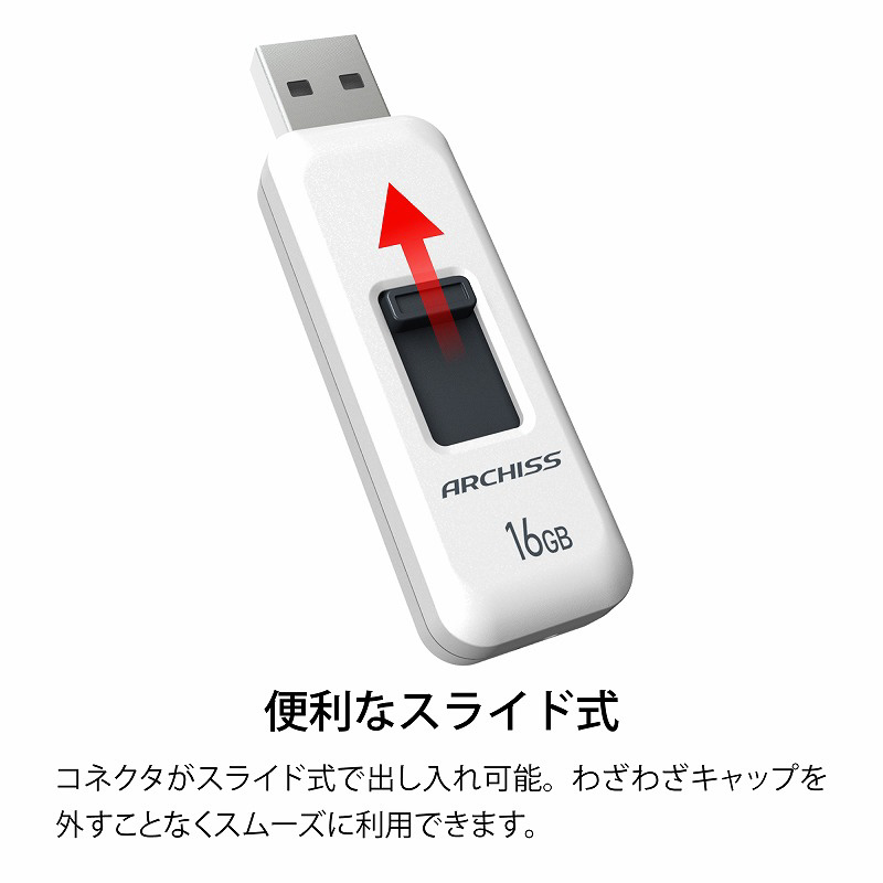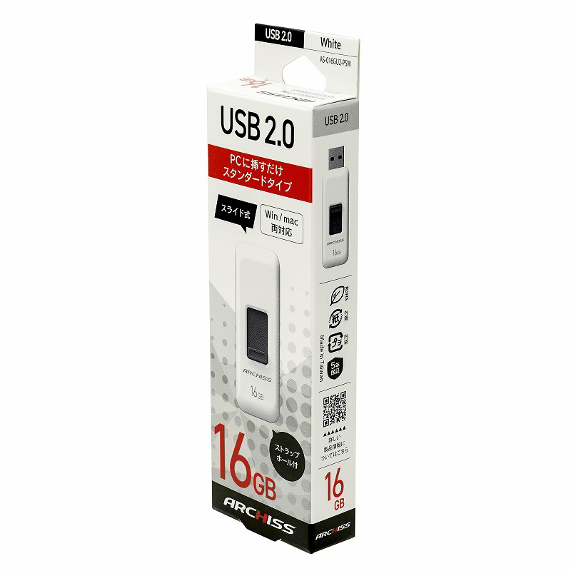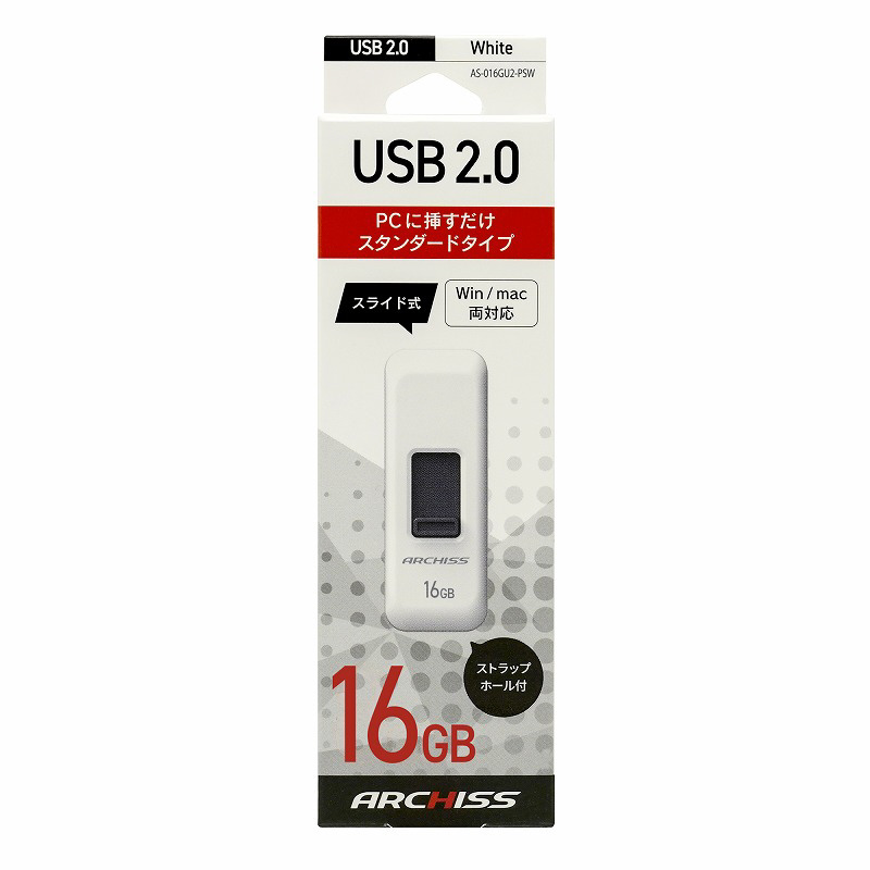 USBメモリ ARCHISS USB2.0(Mac/Windows11対応) ホワイト AS-016GU2-PSW [16GB /USB TypeA /USB2.0 /スライド式]