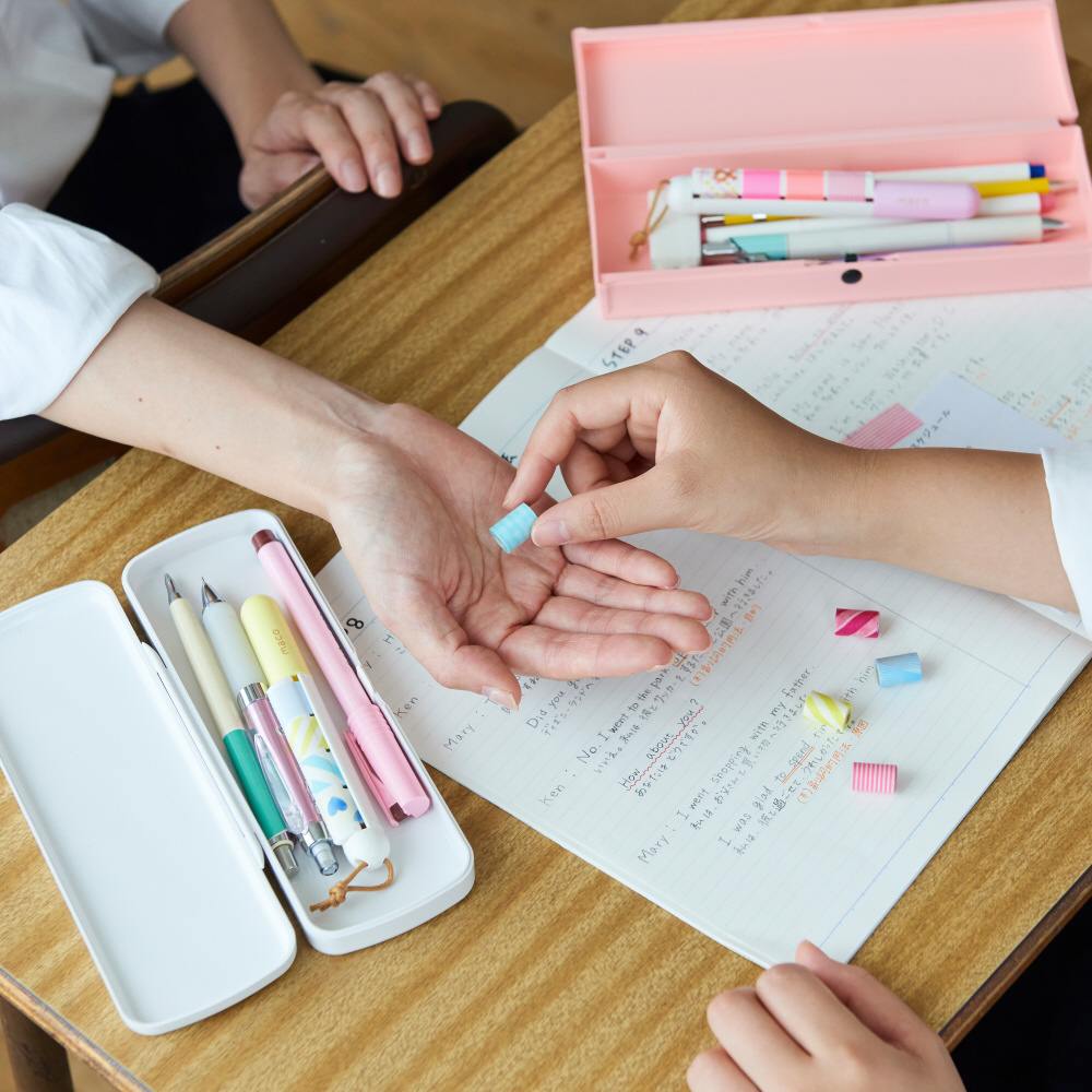 本体はテープカッター付きで、はさみを使わずきれいにカットが可能。マスキングテープ本来の「 好きな長さで使える」嬉しさはそのままに、旅先やオフィス、学校などさまざまな場所で、お気に入りの柄のマスキングテープをもっと楽しく便利に使えるようになります。