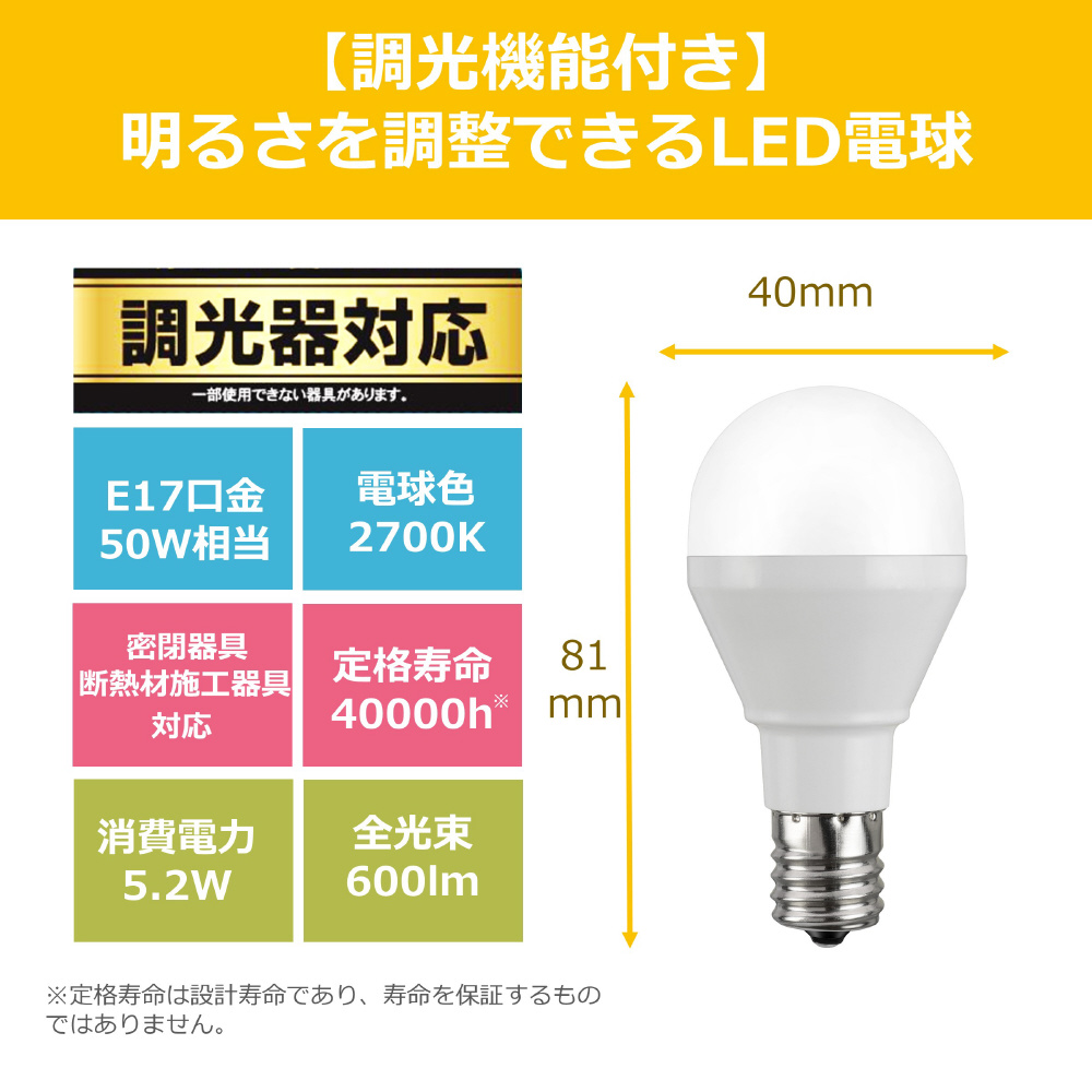 LED電球 調光対応 電球色(2700K) 口金E17 600lm 全方向 平均演色評価数Ra85
