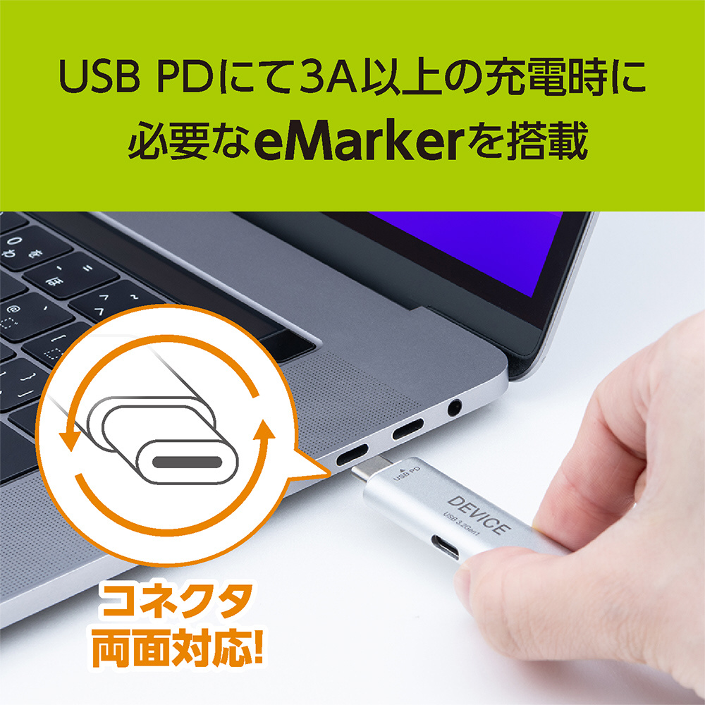 USB PDにて3A以上の充電時に必要なeMarkerを搭載しています。