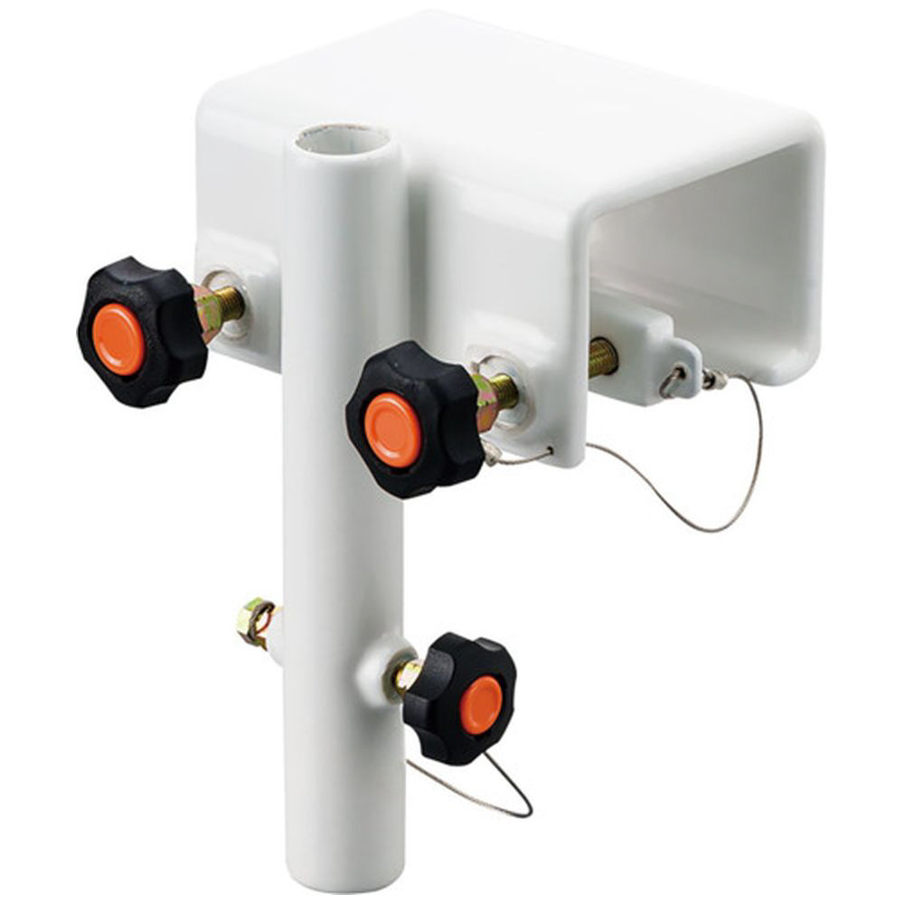電工用高所作業車に簡単にのぼり旗をセットでき、はさまれん棒を装着出来ます。