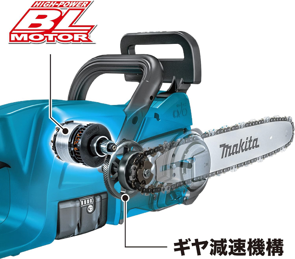 木造家屋の解体作業等、ハードな切断に便利。 ハイパワーでパワフルに切断で、玉切りや薪づくり等、幅広い用途に。 ハイパワーブラシレスモータに加え、 ギヤ減速機構でチェーン刃を高トルクで駆動。 ハードな作業でも回転が止まりにくい。