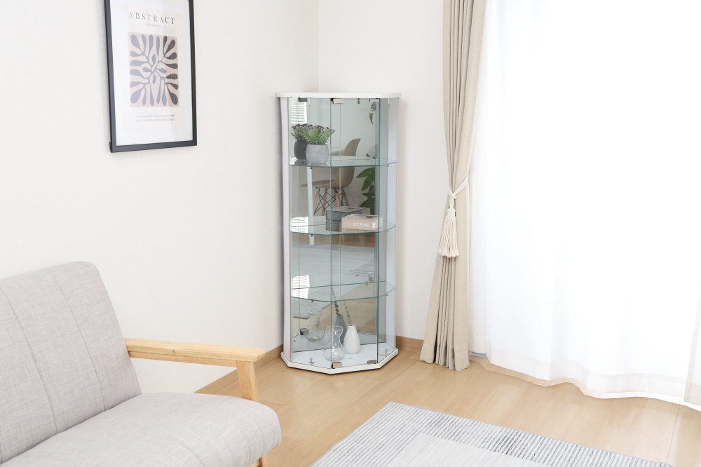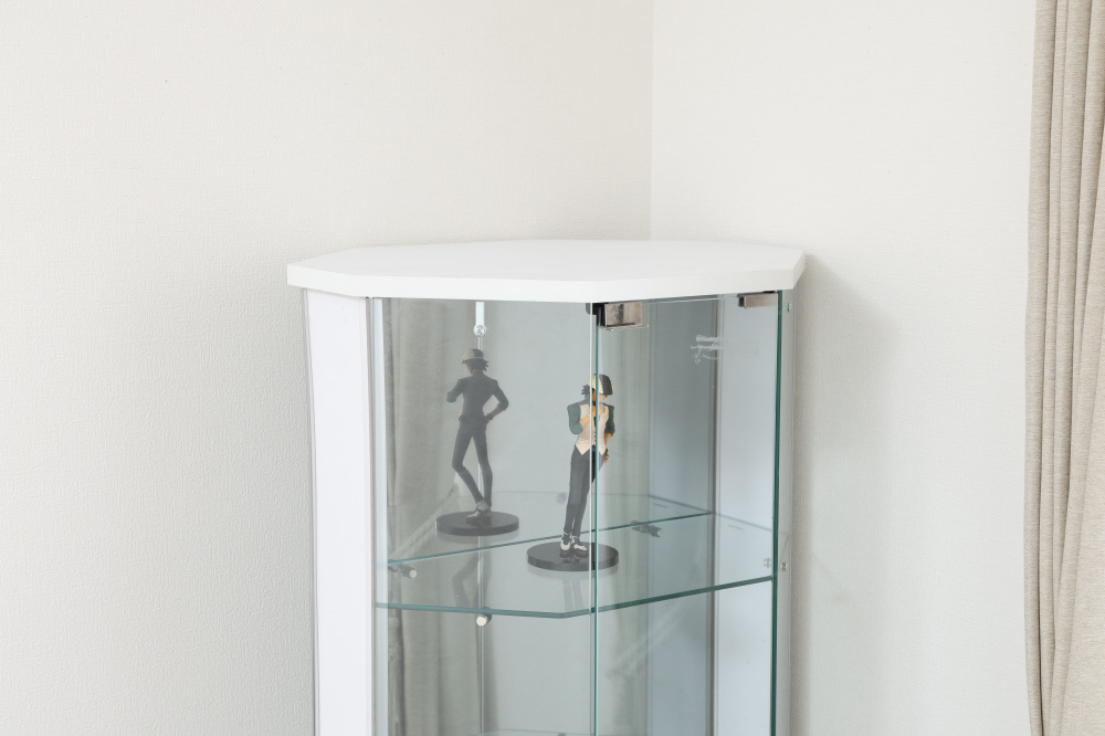 ガラスコレクションケース BAAL コーナー キャスター付き ホワイト