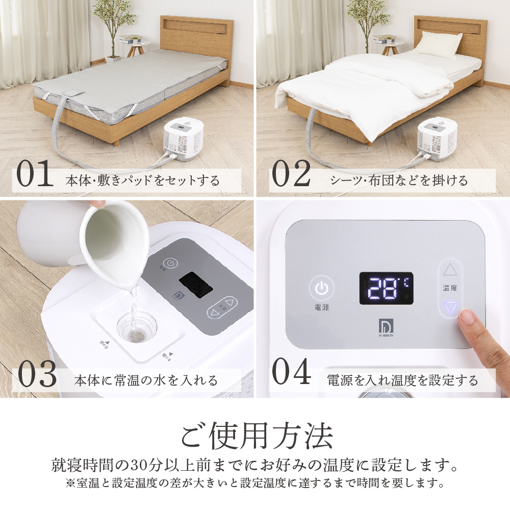 夏の寝苦しい夜も、冬の寒い夜も、自分好みの温度に設定できる温冷水敷パッド。