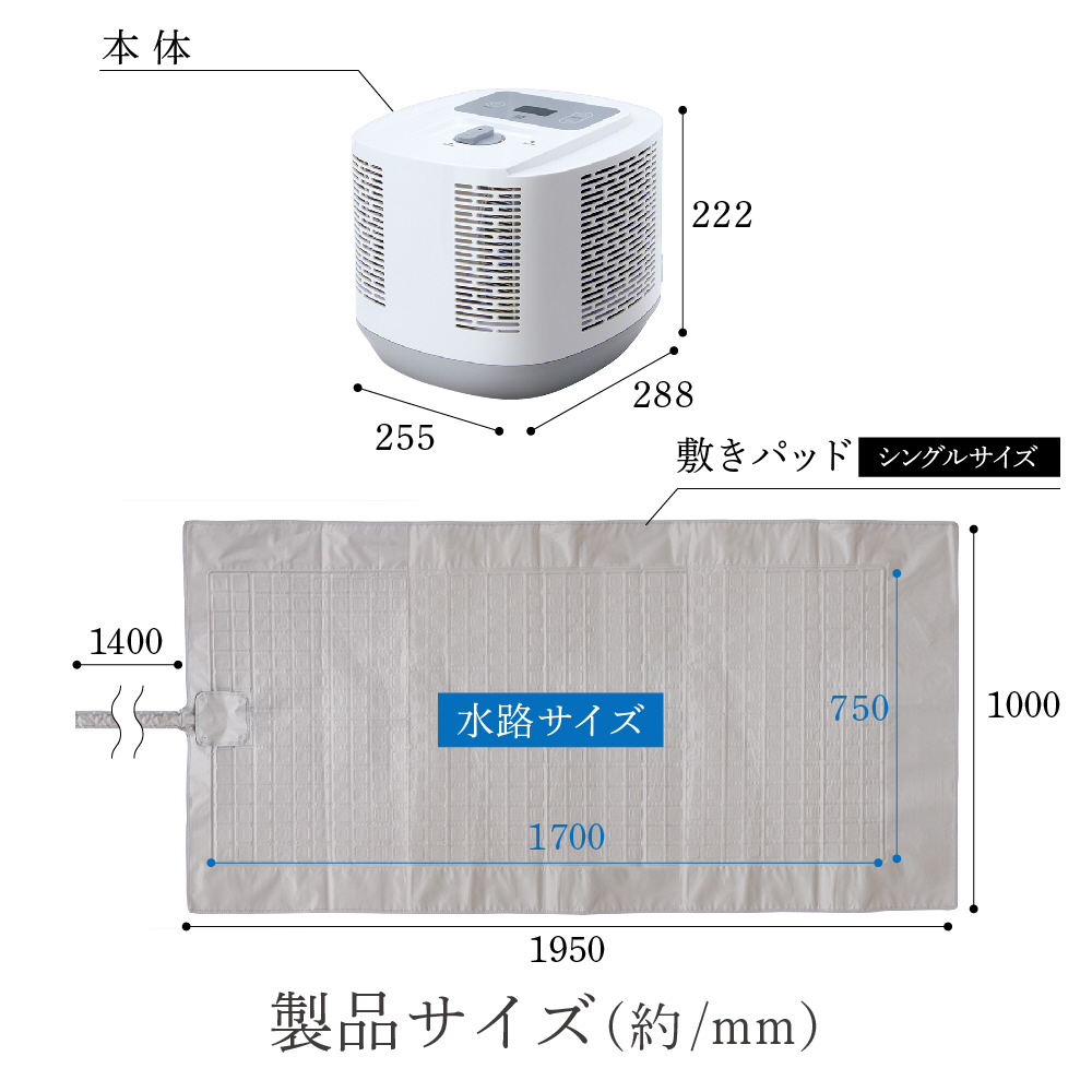■薄型敷きパッド内を水が循環、マス目状の水路の中を常に冷水・温水が循環して快適!