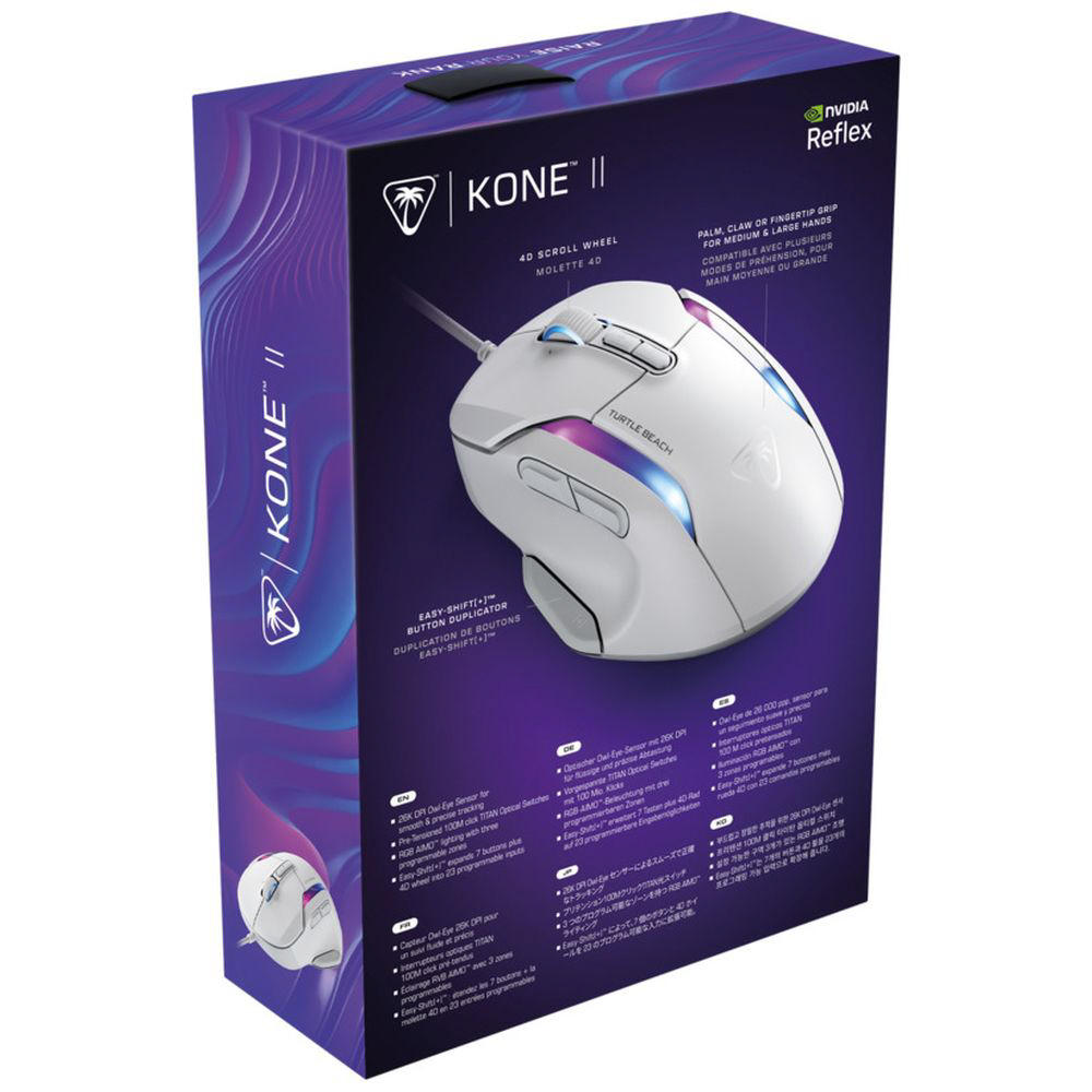 Kone II は NVIDIA Reflex に対応しているため、ターゲットをより素早く捕捉して狙いの精度を高めることができます。