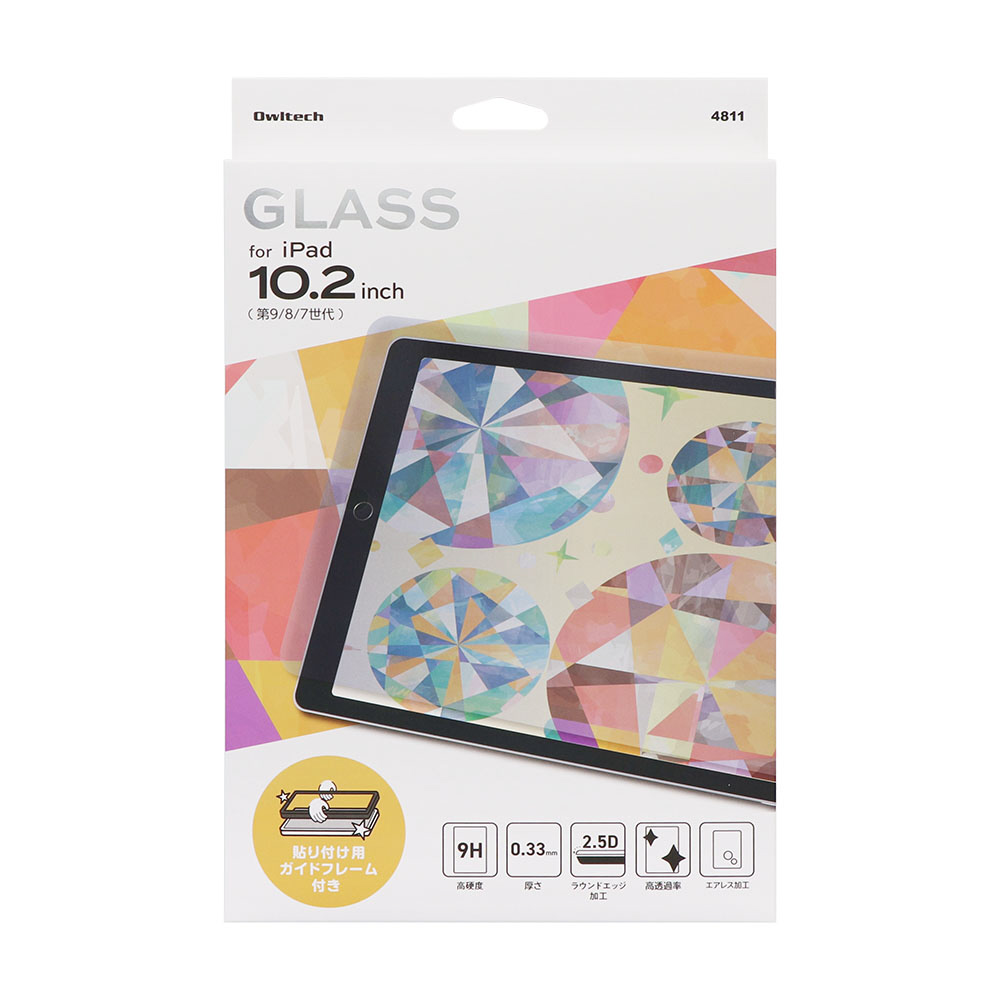 10.2インチ iPad(第9/8/7世代)用 貼り付け用ガイドフレーム付属 画面保護ガラス OWL-GSID10201-CL