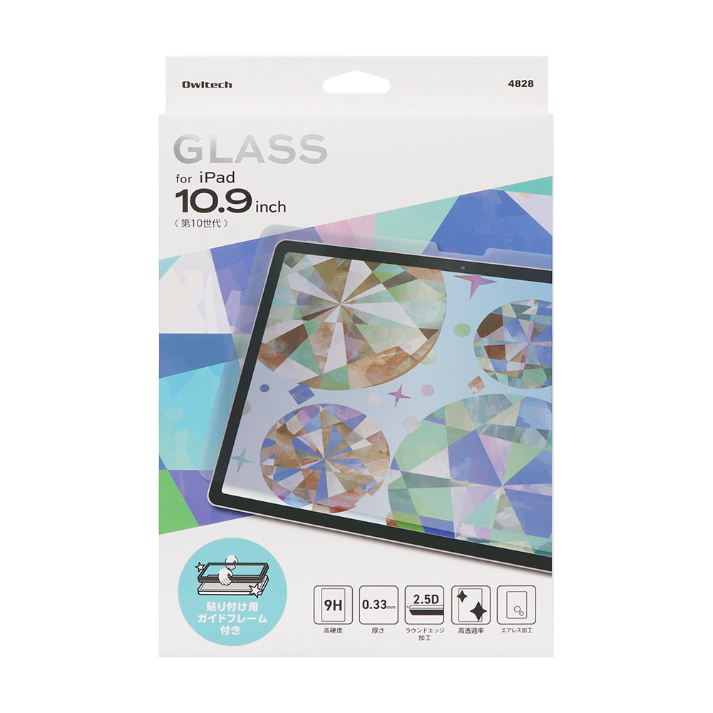 10.9インチ iPad(第10世代)用 貼り付け用ガイドフレーム付属 画面保護ガラス OWL-GSIE10901-CL