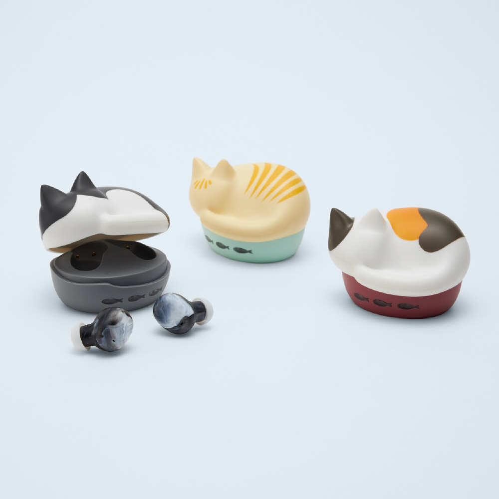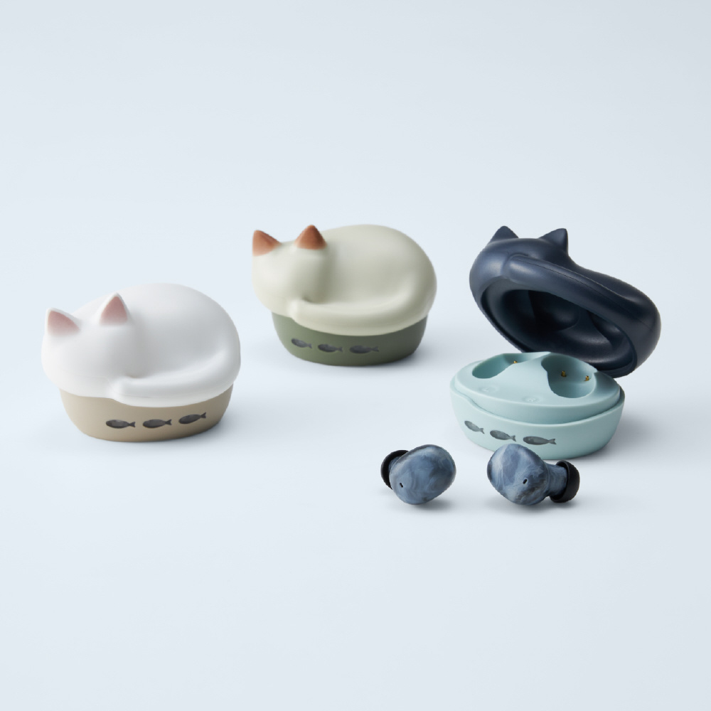 小さく丸くなって眠る猫をモチーフにした完全ワイヤレスイヤホン。