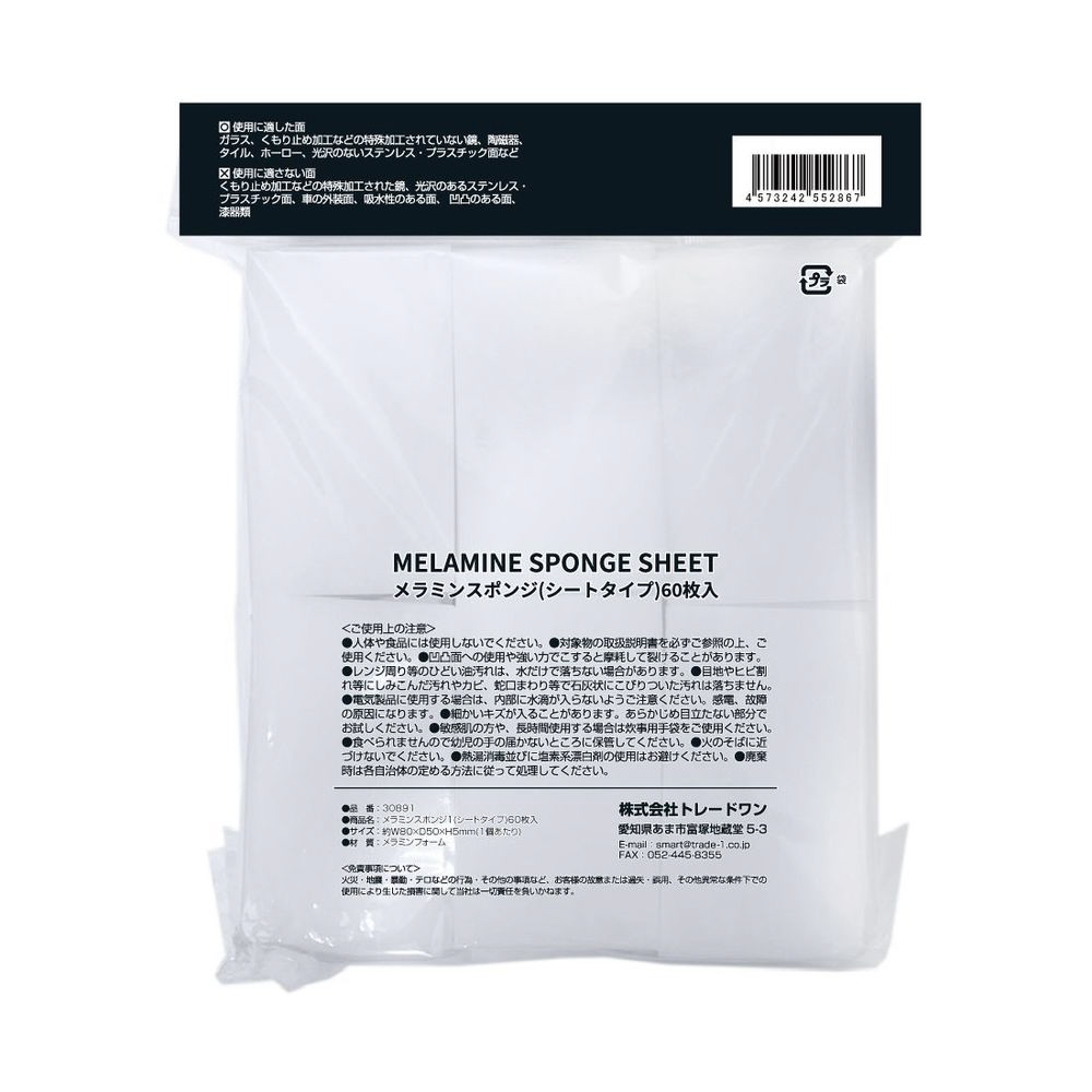 水だけで汚れが落ちるメラミンスポンジ60個入り。