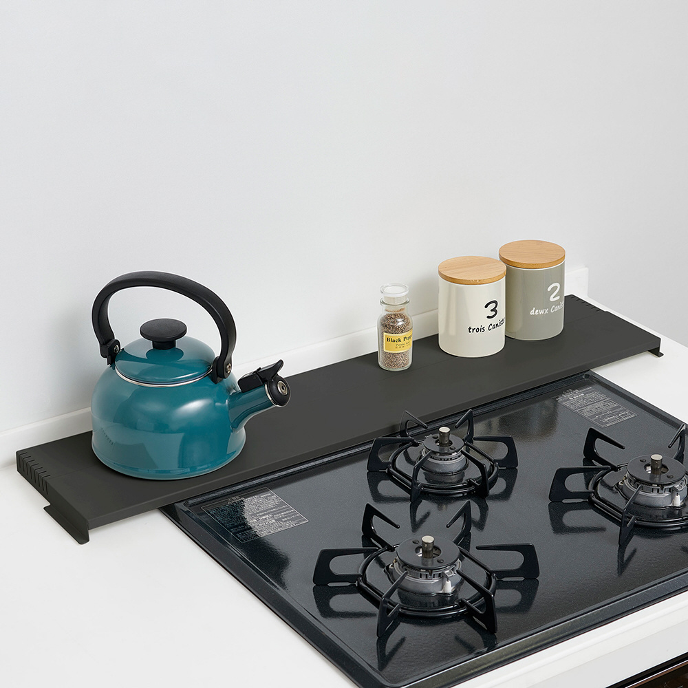 排気口カバー 75cm 奥行き調節 コンロ用 油はね防止 ブラック KHC-D75BK