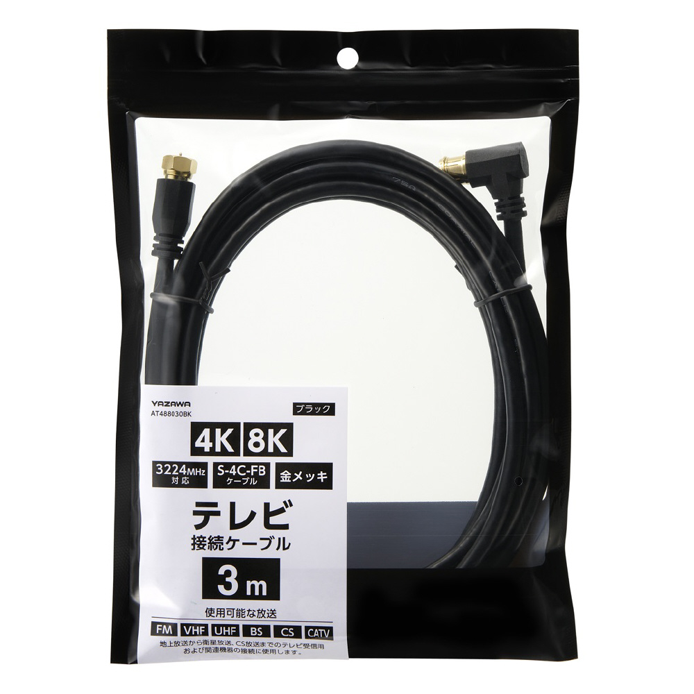 アンテナケーブル 3m AT488030BK 3224MHz対応 S-4C-FBケーブル 金メッキ L 字差込式 黒