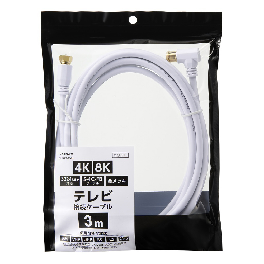 アンテナケーブル 3m AT488030WH 3224MHz対応 S-4C-FBケーブル 金メッキ L 字差込式 白