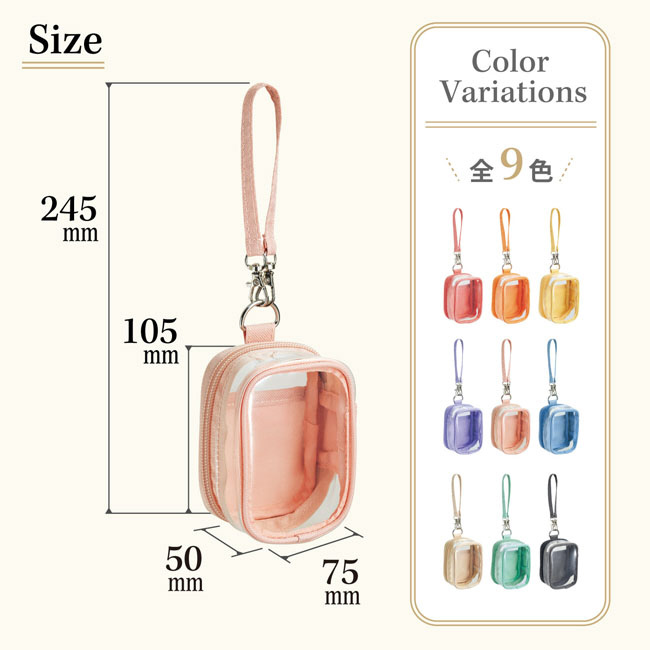●本体寸法:幅×奥行×高さ 75×50×105mm●本体重量:40g●材質:本体/ポリエステル・PVC、透明シート/PET●色:シャーベットピンク※ストラップ付き(ストラップを含む縦:約305mm)※透明シート・帯の透明シート各1枚付き