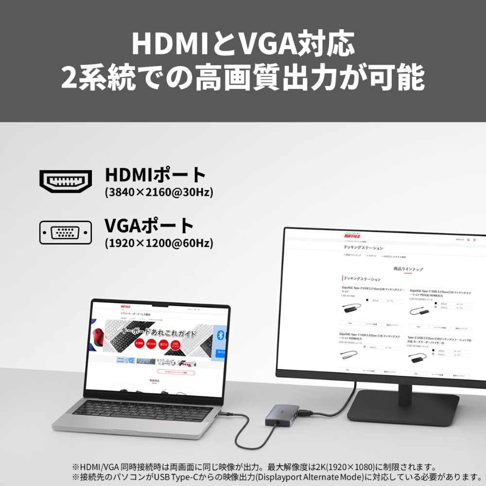 「Giga対応 Type-C USB 3.2(Gen 1)用 ドッキングステーション PD対応 HDMI・VGA出力」