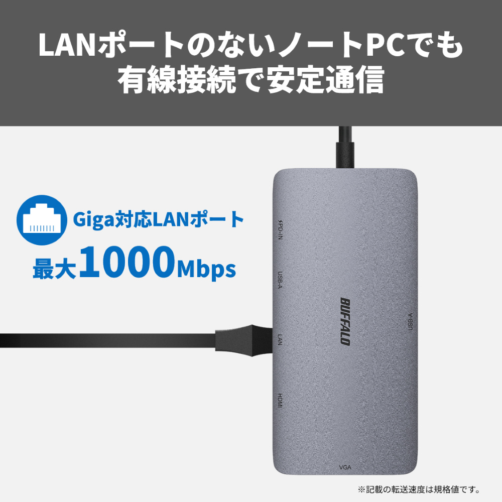 本商品は、GigaとUSB 3.2(Gen 1)に対応した有線LANアダプターです。LANポートのないパソコンもUSB端子に接続することで、有線LAN通信が可能になります。有線LAN環境しかないホテルや宿泊先でも快適高速インターネットを楽しむことができます。
