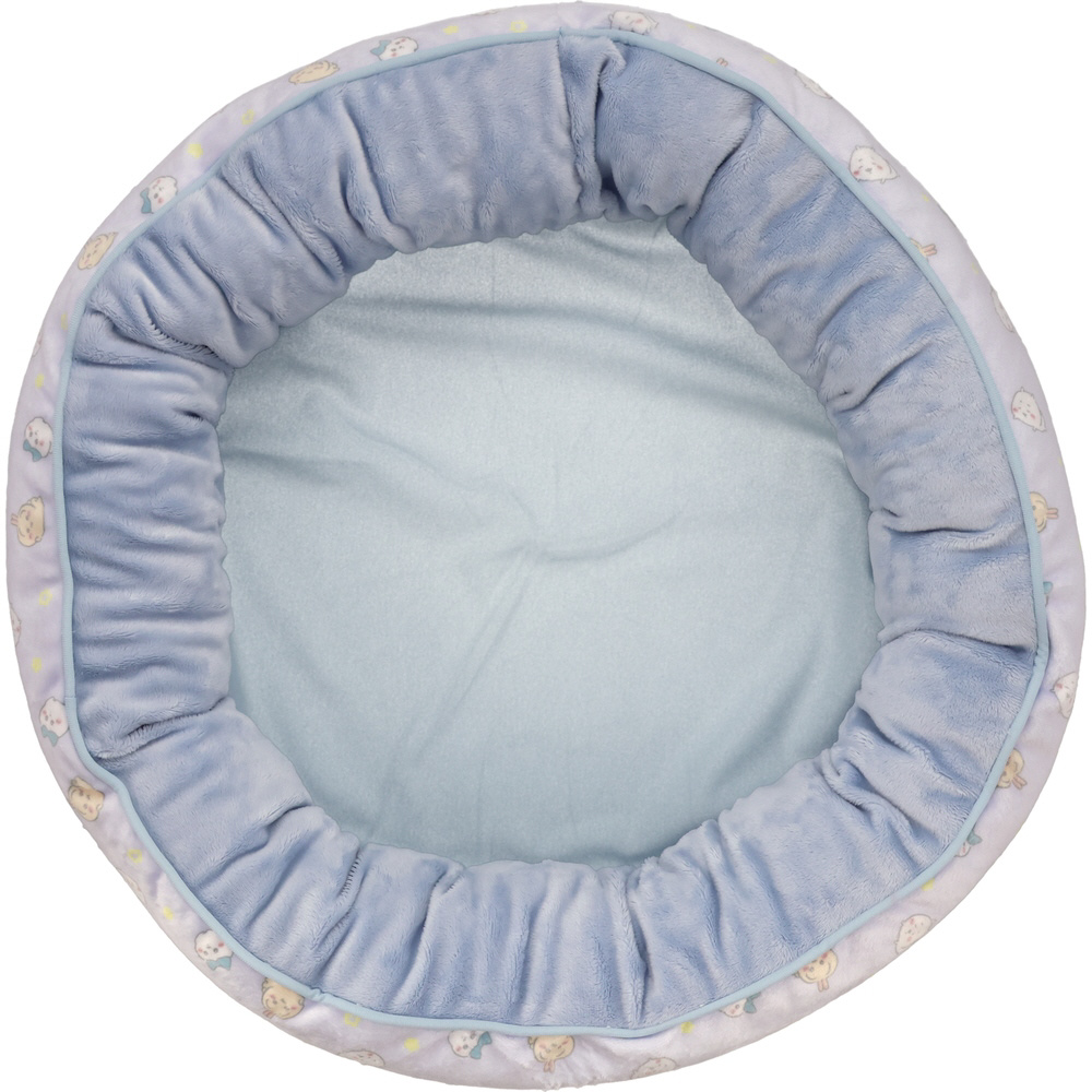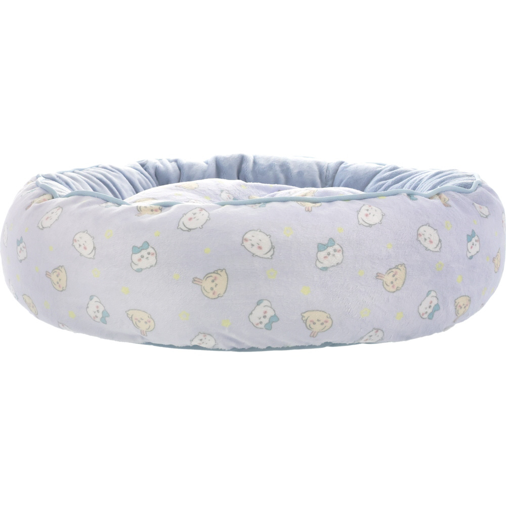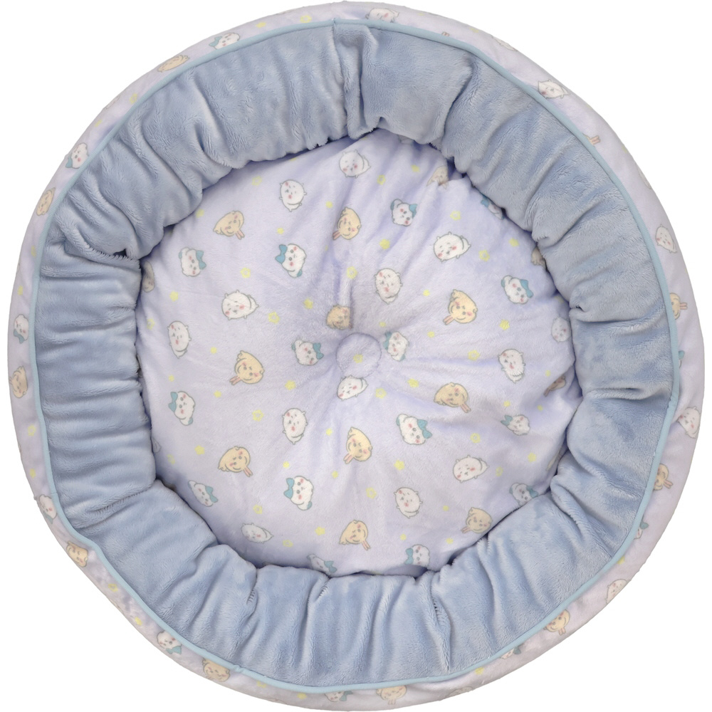 ■ちいかわ総柄ペットベッド ブルー ゴロンとのんびり過ごせるラウンド型ベッド クッションは取り外し可能&表裏つかえるリバーシブル仕様 ■ポイント マイクロファイバー生地で手ざわりふわもこ。