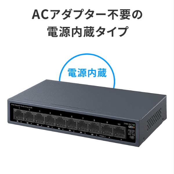 10ポートL2アンマネージGigabit PoEハブ