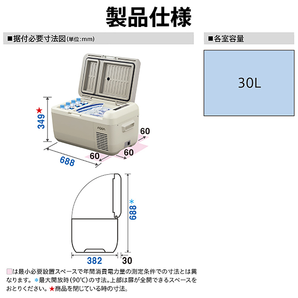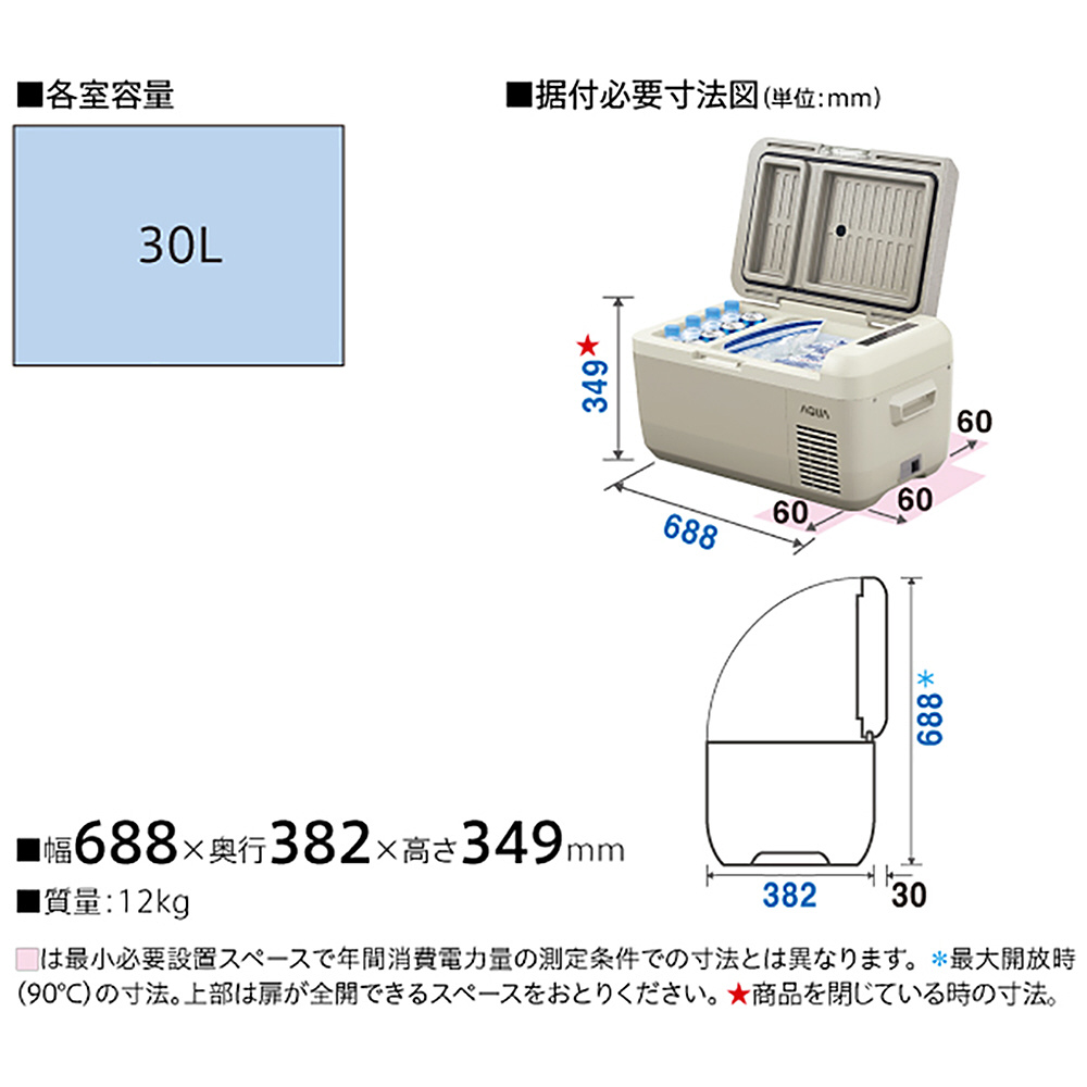 ポータブル冷蔵庫 グレージュ AQP-M3R-H [幅68.8cm /30L /1ドア /上開き /2024年]