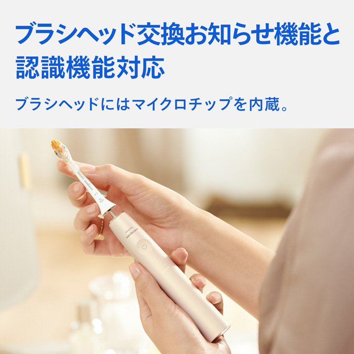 また、ブラシヘッド交換お知らせ機能対応ハンドルでは、ブラシヘッドに毎回のブラッシングの圧力と時間を記録し、ブラシ交換のタイミングが記録され交換時期をアプリやハンドルのランプでお知らせします。