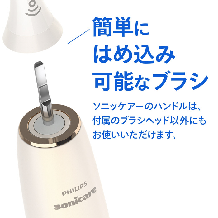 ブラシヘッド認識機能対応ハンドルでは、ブラシヘッドの種類を認識し、最適なモードと強さに自動的に設定します。