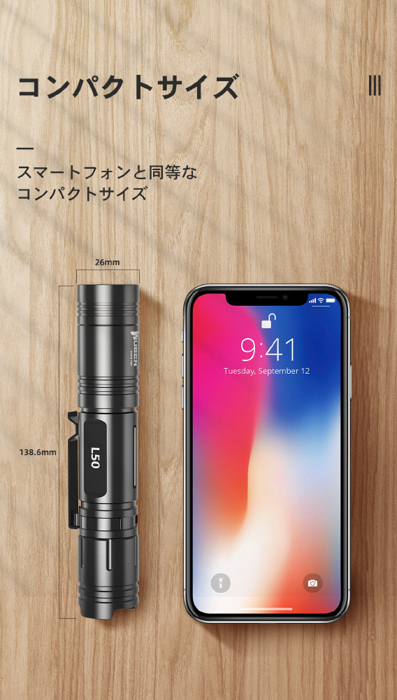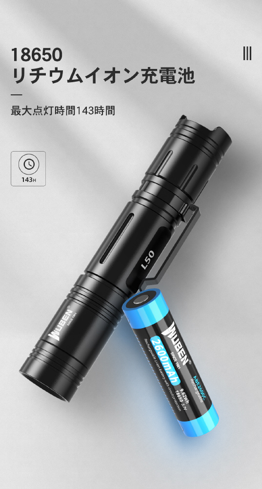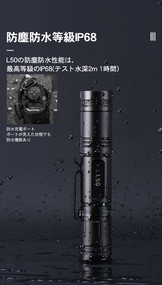 充電式防水フラッシュライト L50C [LED /専用電池 /防水対応]