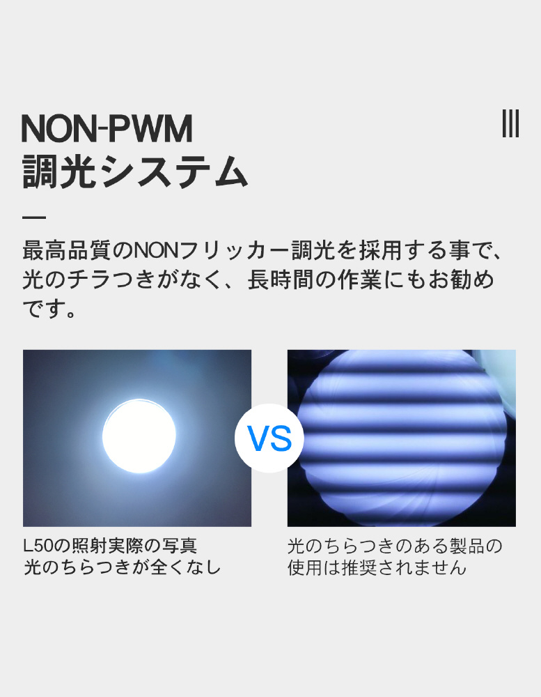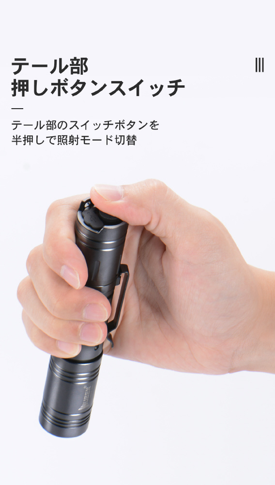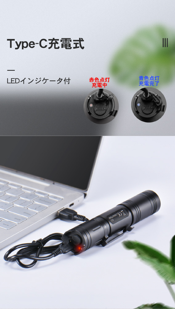 USB Type-C充電式。電池残量を表示可能。エンド部自立可能
