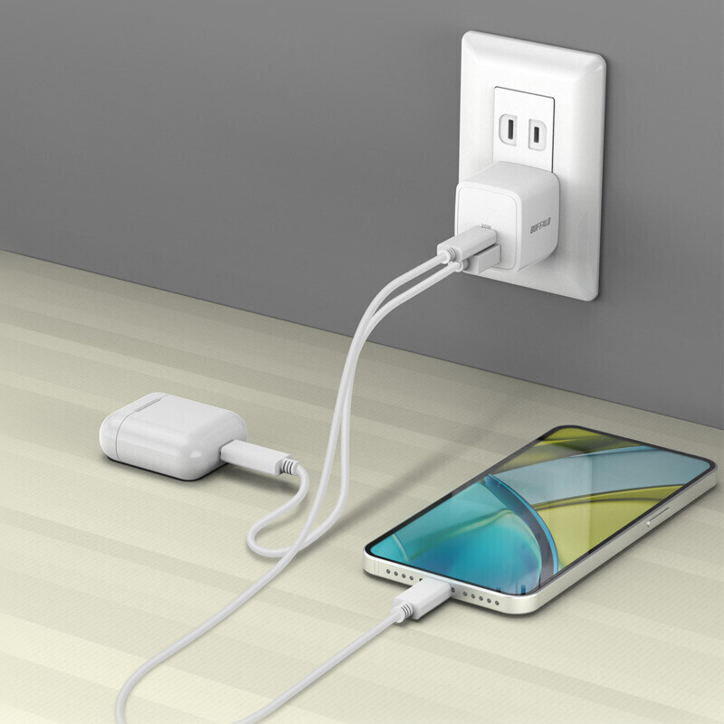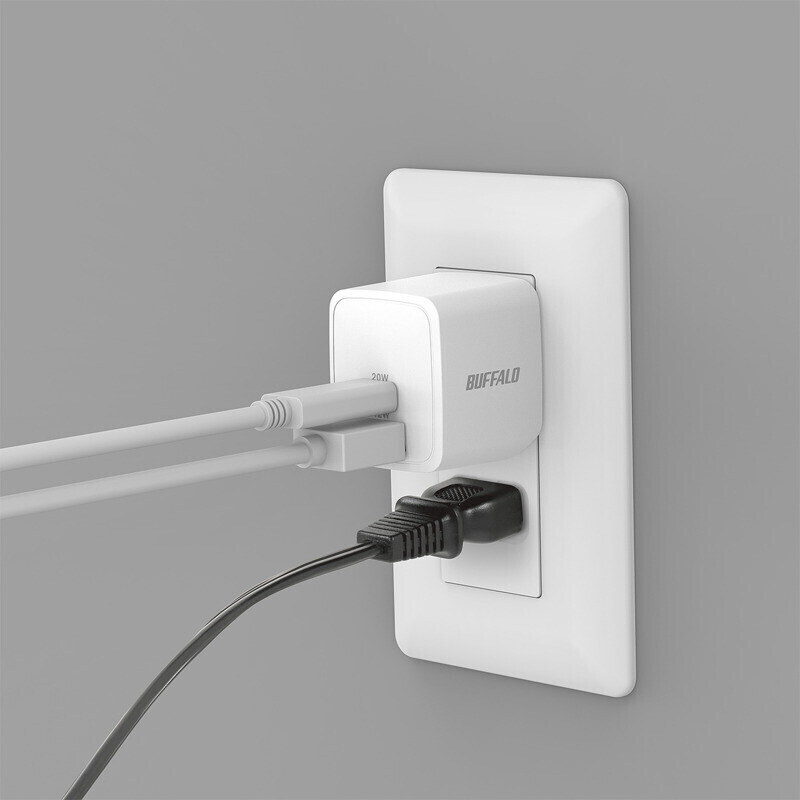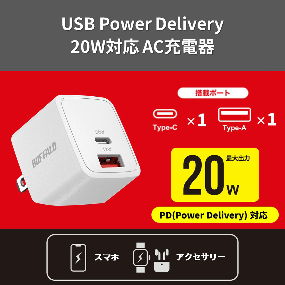 PD20W対応 AC充電器 C×1/A×1 2ポート ホワイト BSACPD2010C2WH [2ポート /USB Power Delivery対応 /GaN(窒化ガリウム) 採用]