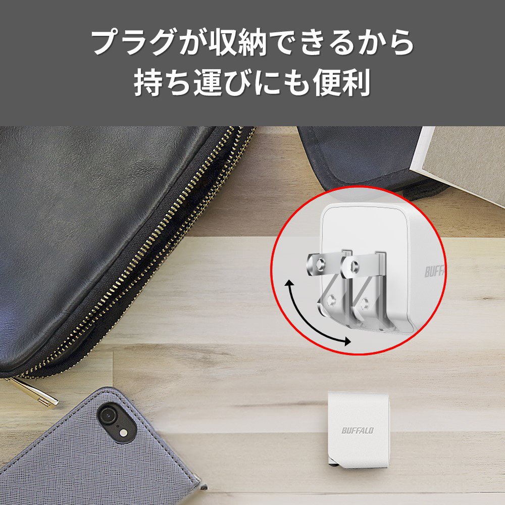 未使用時は電源プラグを充電器本体に収納でき、出張などの際の持ち運びに便利です。