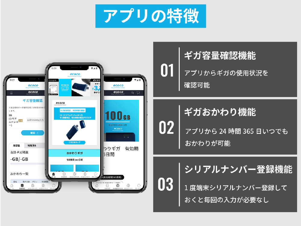 初回購入時のギガを使い切ってしまったあとは、ギガおかわりすることで継続して利用可能。
