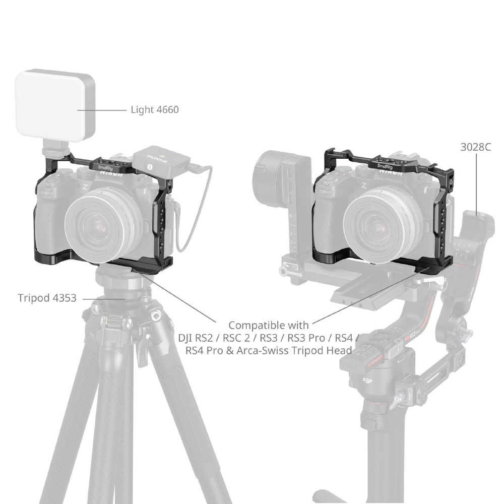 ・一体型 Arca-Swiss クイックリリースプレート:さまざまな撮影セットアップに合わせて、Arca タイプの三脚とスタビライザーを素早く切り替えることができます。