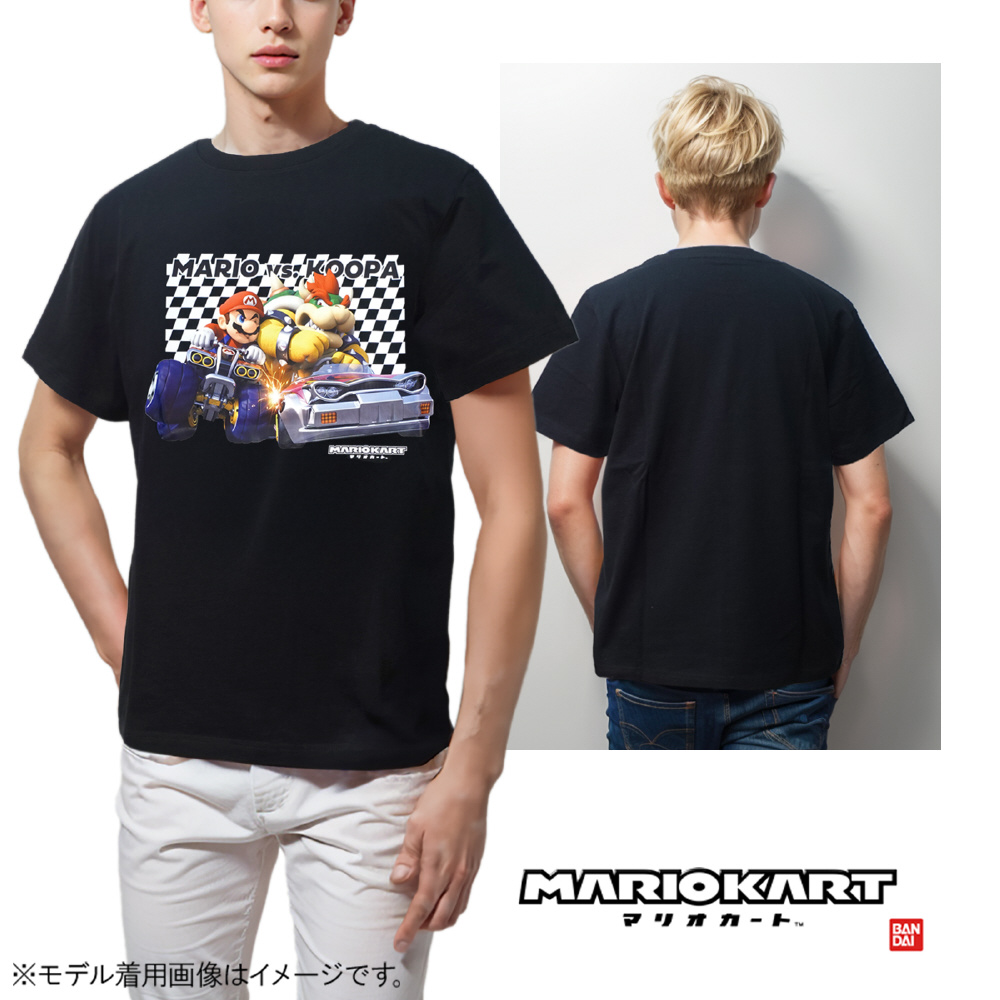 フロントにはカートに乗ったマリオとクッパがプリントされています。カラーはベーシックなブラック、ホワイトの2色展開。サイズはSからXLと、豊富に取り揃えています。