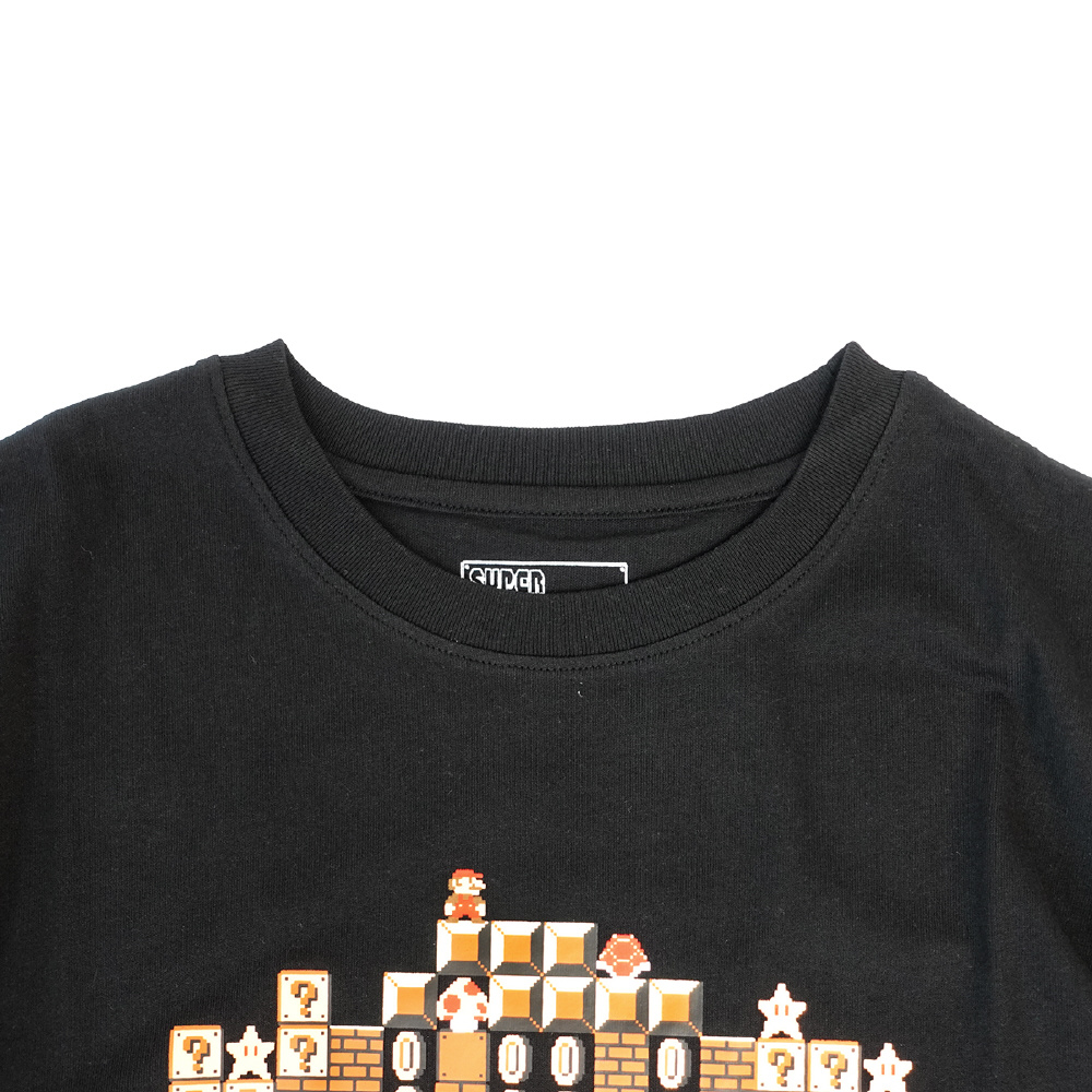 ゲームのステージがデザインされた半袖Tシャツが登場しました。マリオはもちろん、お馴染みのブロックやコインなどのアイテムなどが描かれています。カラーはブラック・ホワイトの2色展開。サイズはSからXLと、豊富に取り揃えています。