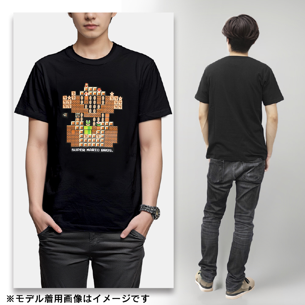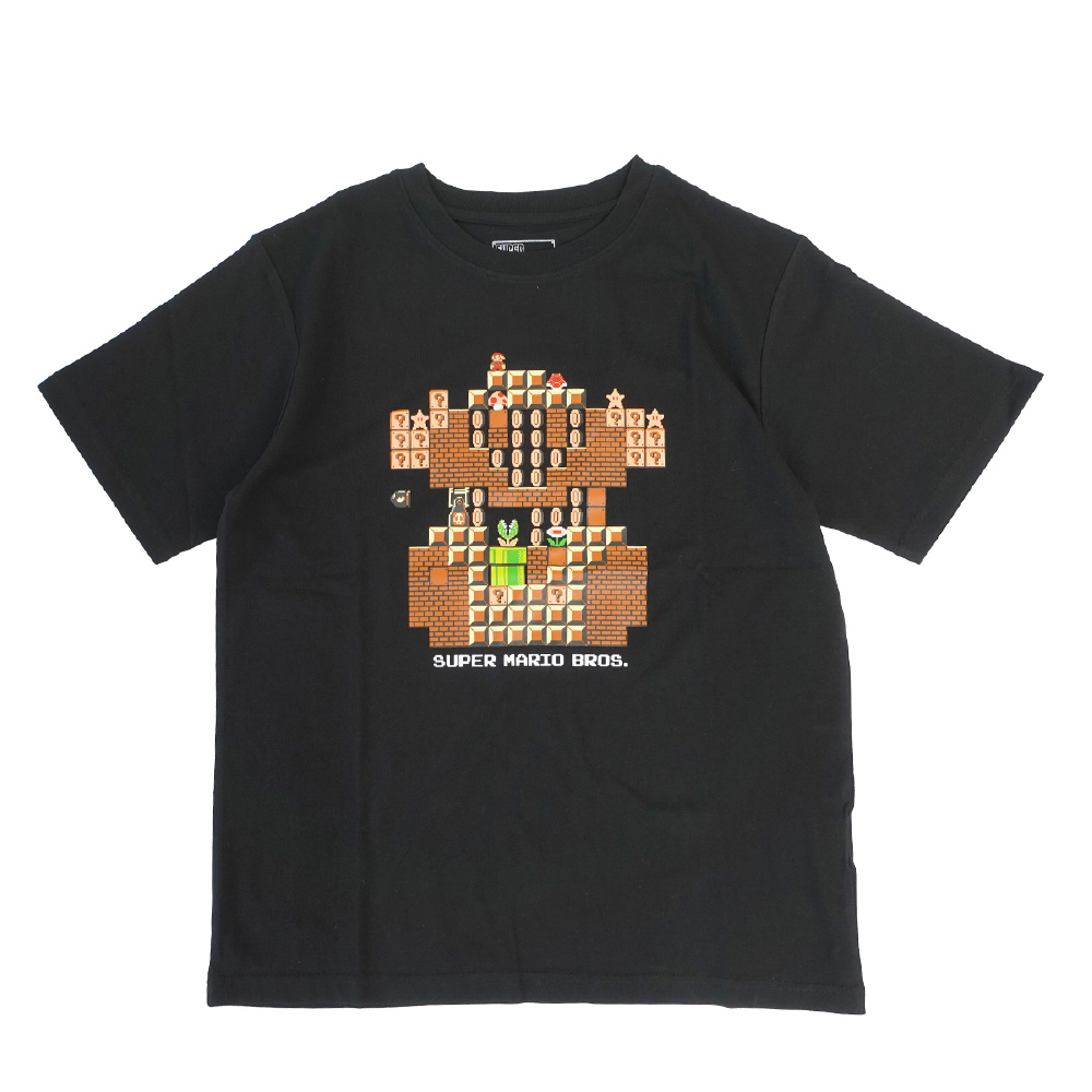 ゲームのステージがデザインされた半袖Tシャツが登場しました。マリオはもちろん、お馴染みのブロックやコインなどのアイテムなどが描かれています。カラーはブラック・ホワイトの2色展開。サイズはSからXLと、豊富に取り揃えています。