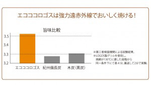 第三者検査機関で味覚調査をした結果、遠赤外線を多く発する備長炭で調理したときよりも、高い数値で旨味成分を計測。