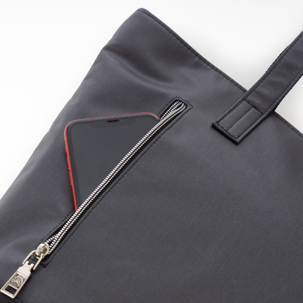 ファスナーで開閉できるトートバックなのでアイテムの飛び出しを防ぎます。