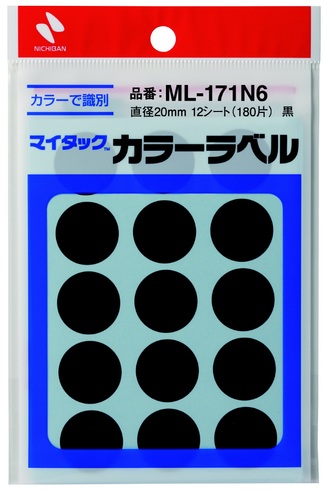マイタックTMラベル カラーラベル 〔15片×12シート〕 黒 ML-171N6