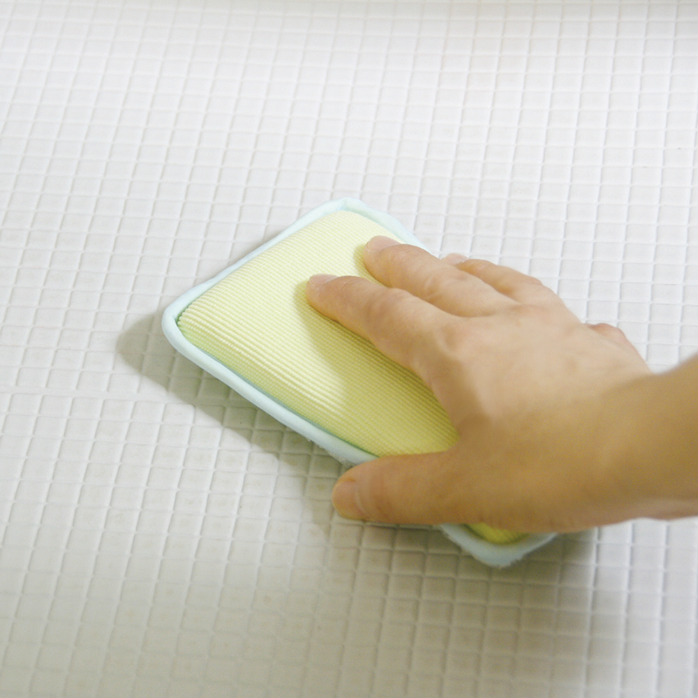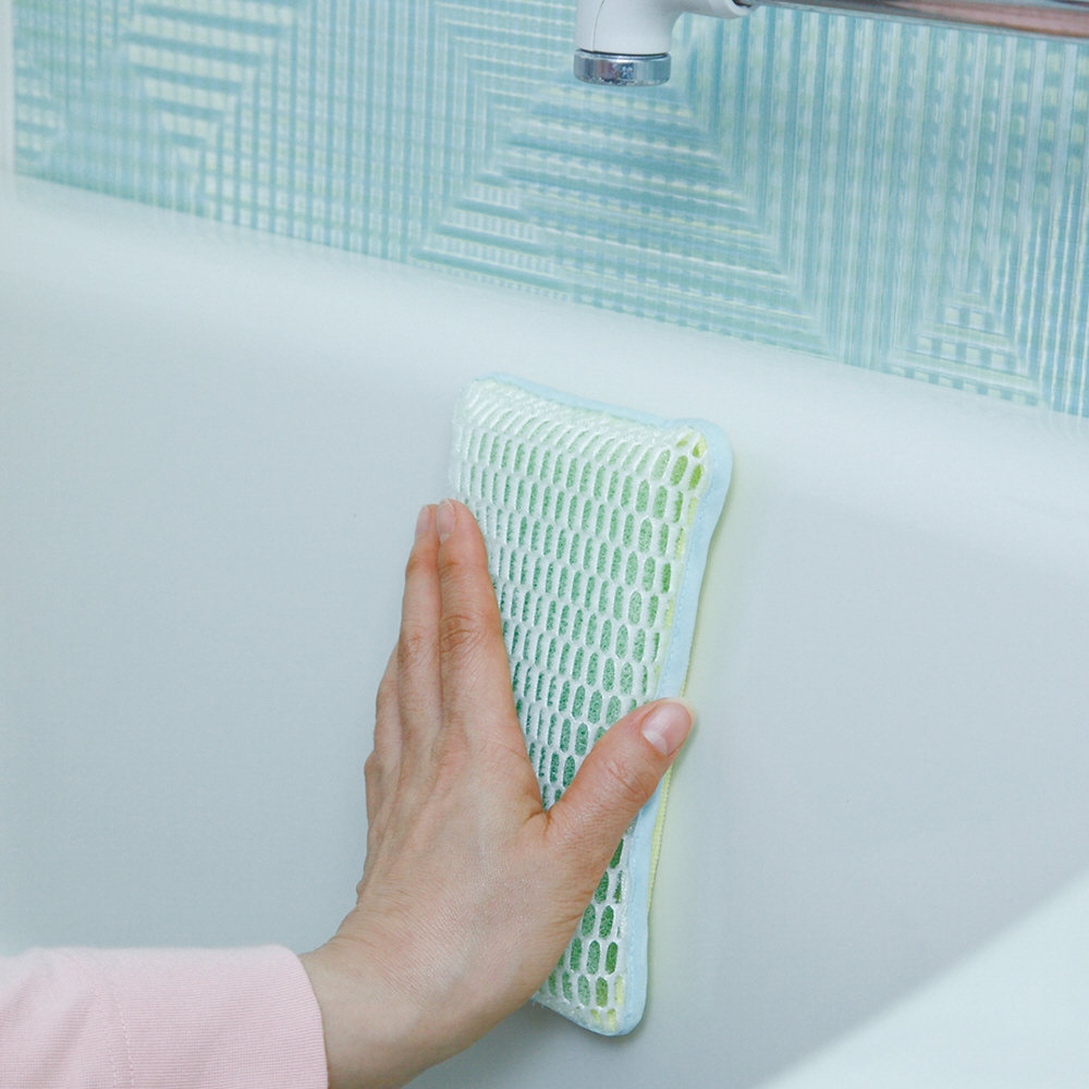 クロス面は、浴槽の皮脂汚れや水垢を掻き取ります。洗剤不使用なのでヌメリなどが残ることがありません。