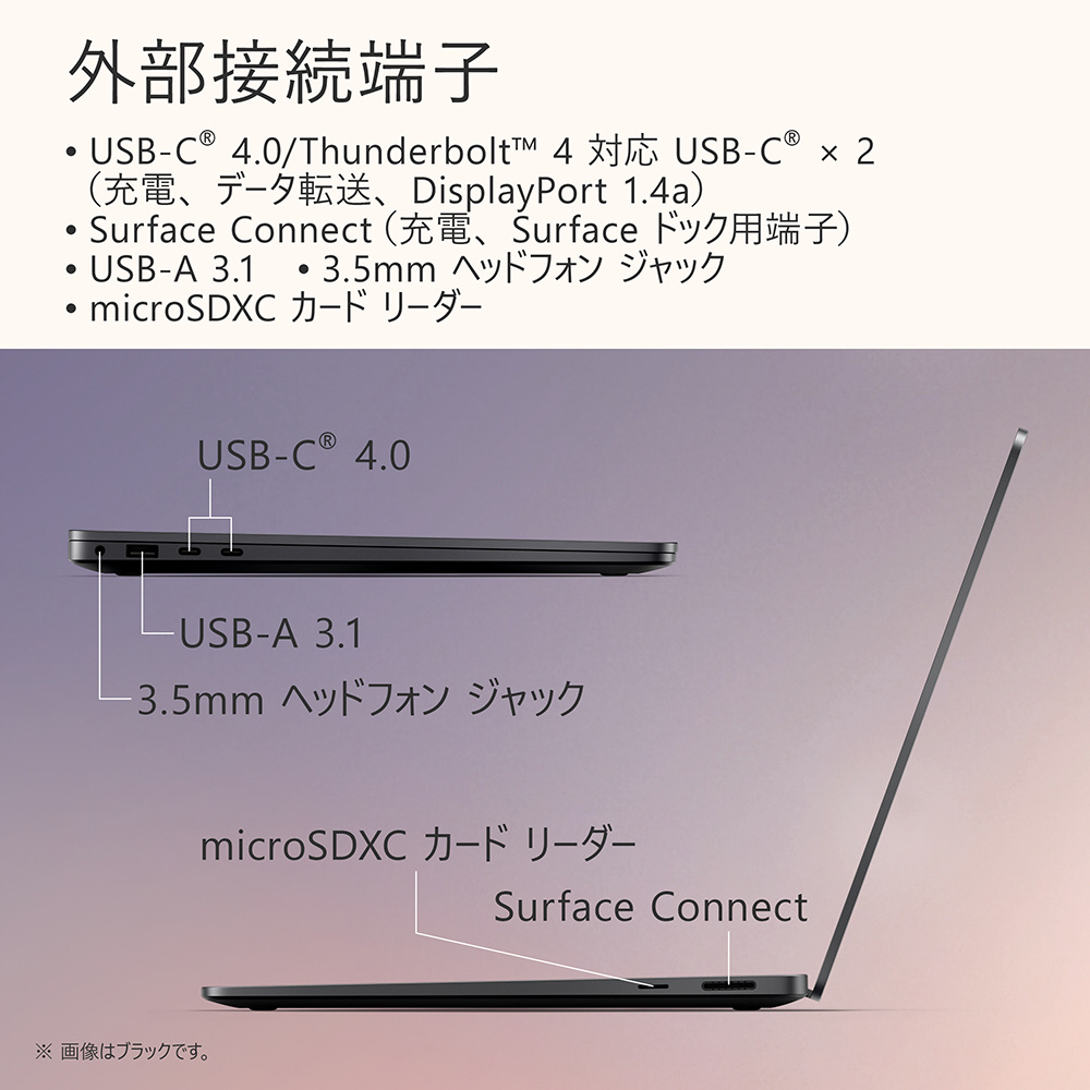 USB 4.0 / Thunderbolt 4対応 USB-C × 2:(充電 / データ転送 / DisplayPort2.1) USB-A 3.1 3.5mm ヘッドホンジャック MicroSDXC カードリーダー